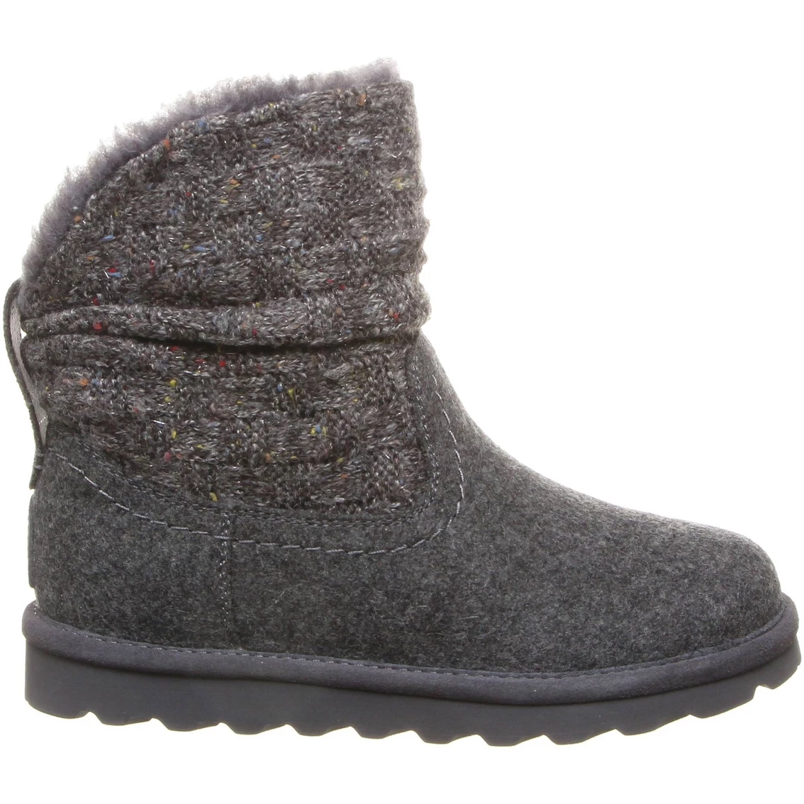 This knit and suede 7-in. boot from BearPaw has a relaxed look and feel! It is designed with wool blend lining and a removable sheepskin footbed. The boot has a blown rubber outsole and an upper treated with NeverWet technology for added protection against the elements. Style: 2133W.
