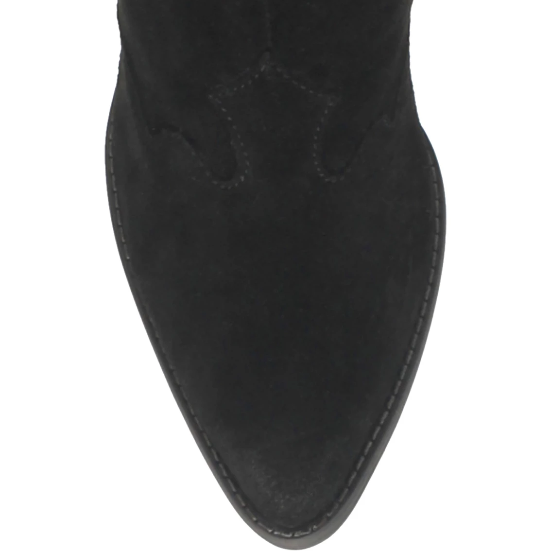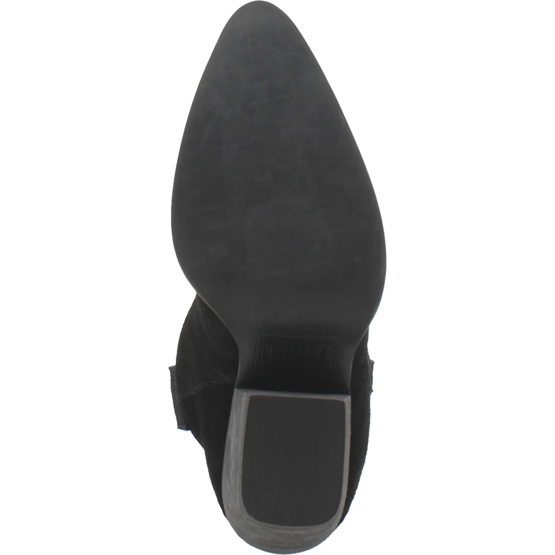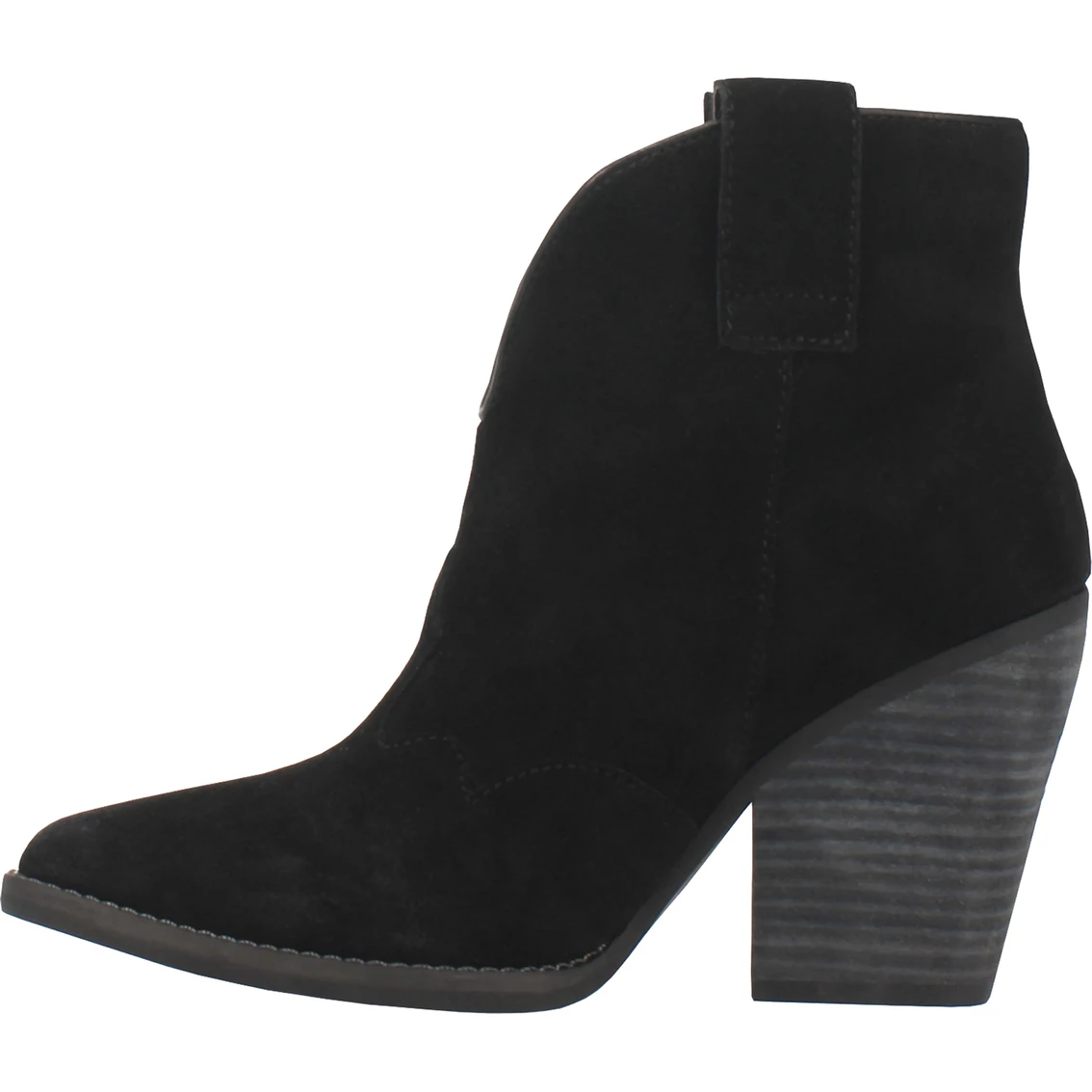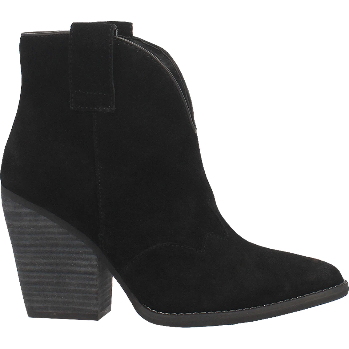 Short boots are here to stay. The Flannie Booties from Dingo are made of a soft suede with a deep western dip along the top line. The high fashion heel amps up the style quotient. Fashion snip toe and cushion insole. Style: DI342.