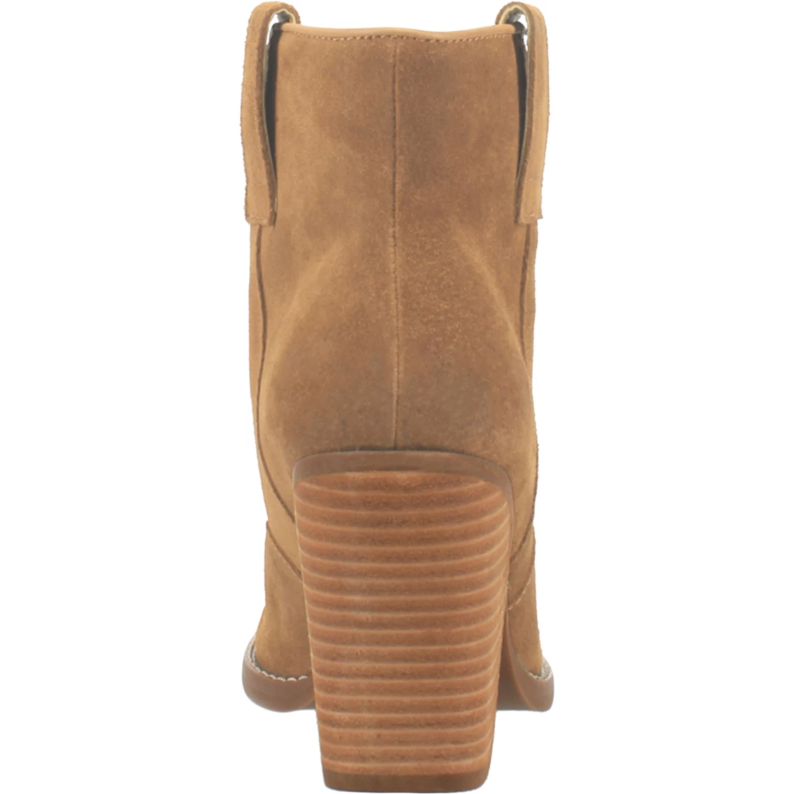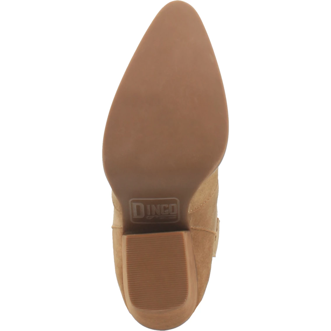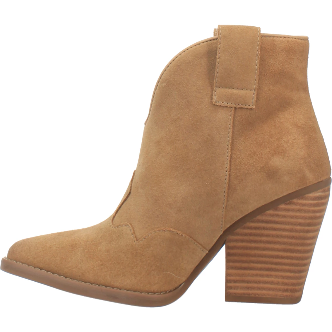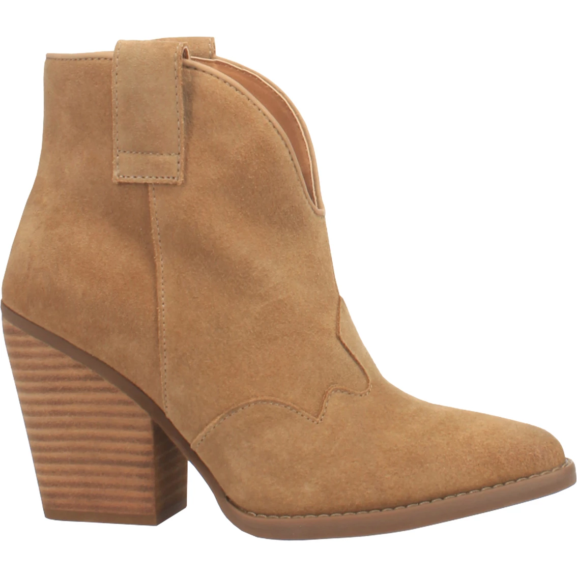 Short boots are here to stay. The Flannie Booties from Dingo are made of a soft suede with a deep western dip along the top line. The high fashion heel amps up the style quotient. Fashion snip toe and cushion insole. Style: DI342.