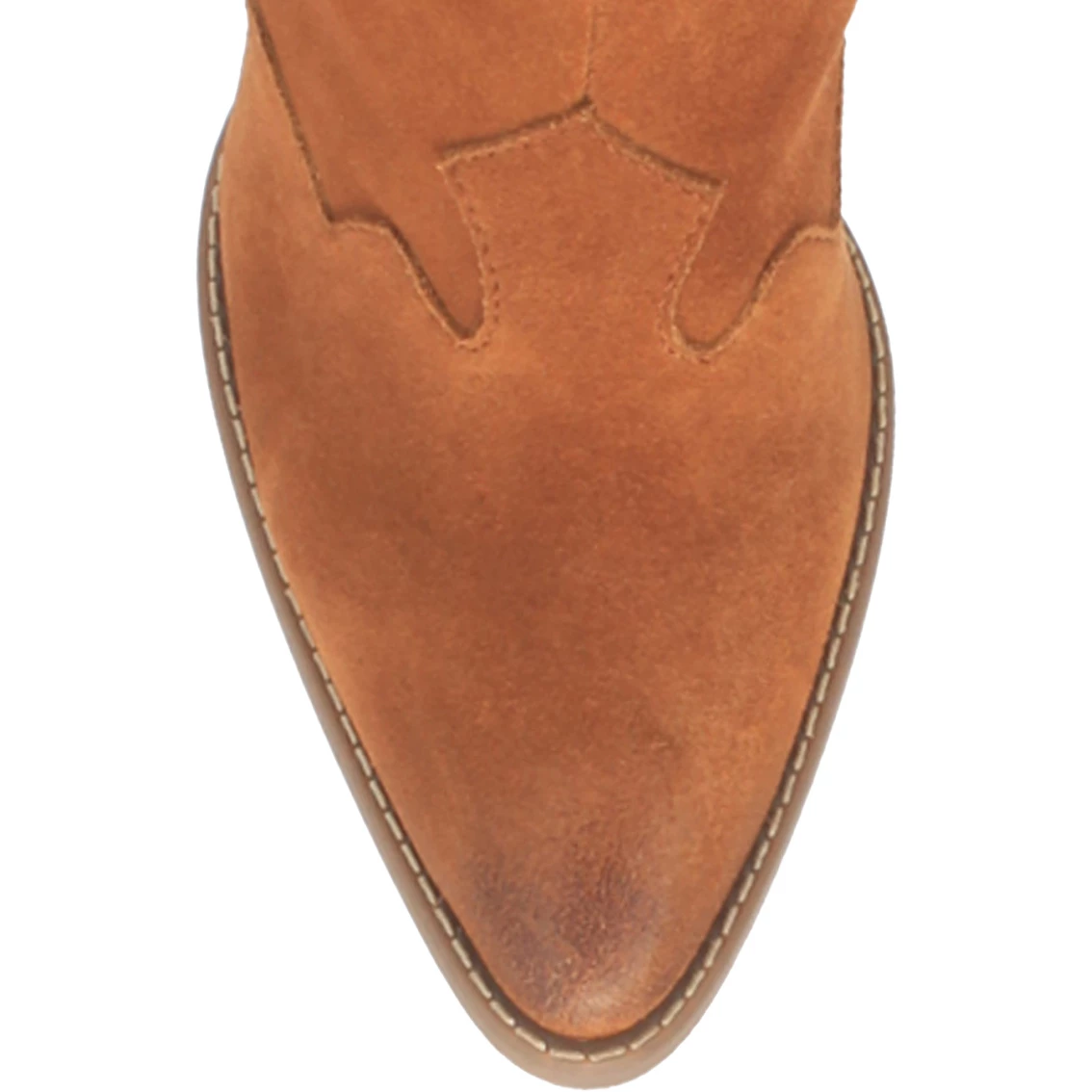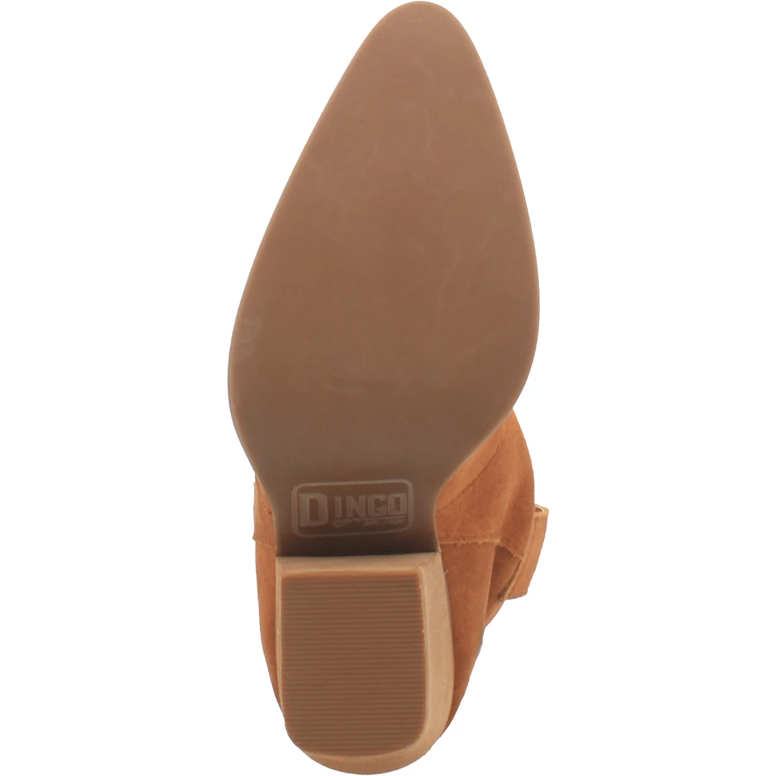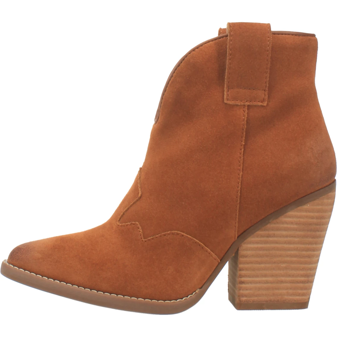 Short boots are here to stay. The Flannie Booties from Dingo are made of a soft suede with a deep western dip along the top line. The high fashion heel amps up the style quotient. Fashion snip toe and cushion insole. Style: DI342.