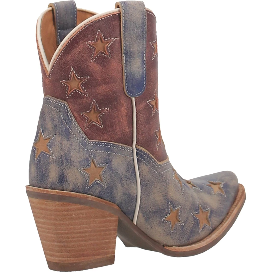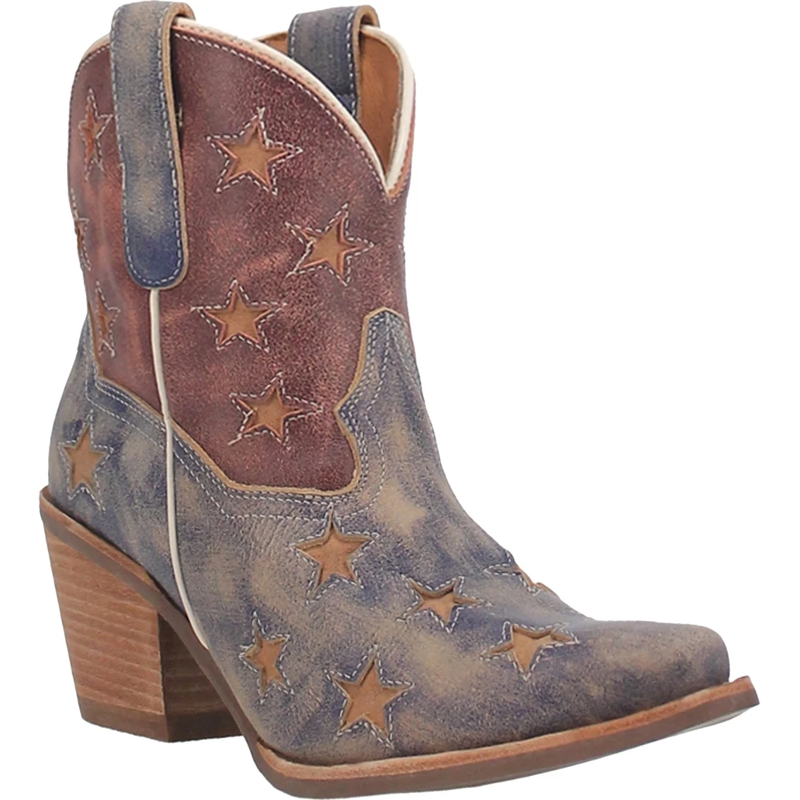 Say “Hello” to your new fave bootie from Dingo. Crafted with soft vintage inspired leather, the Liberty bootie takes a patriotic stand. They are highlighted by star underlay treatment and contrasting piping for a sizzling finish. American pride liberty. Style: DI769400.