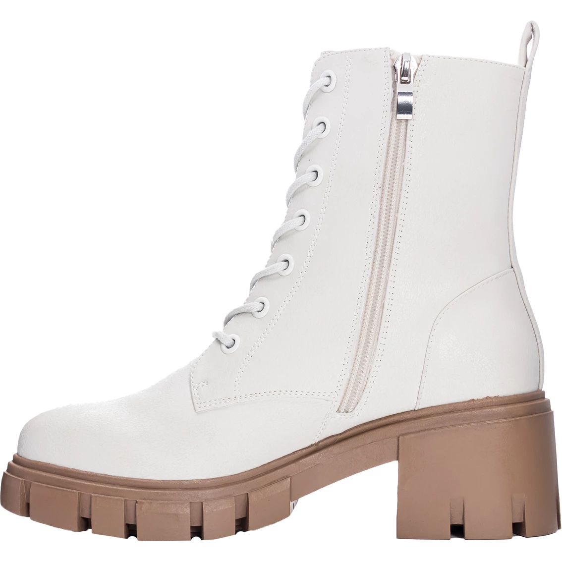 The Newz Lace Up Combat Boot from Dirty Laundry features a slightly flared heel and soft color scheme that adds a feminine flair to the classic style. Pair back to flirty dresses, graphic tees and shorts to tights and skirts in the fall! Style: NEWZ151.