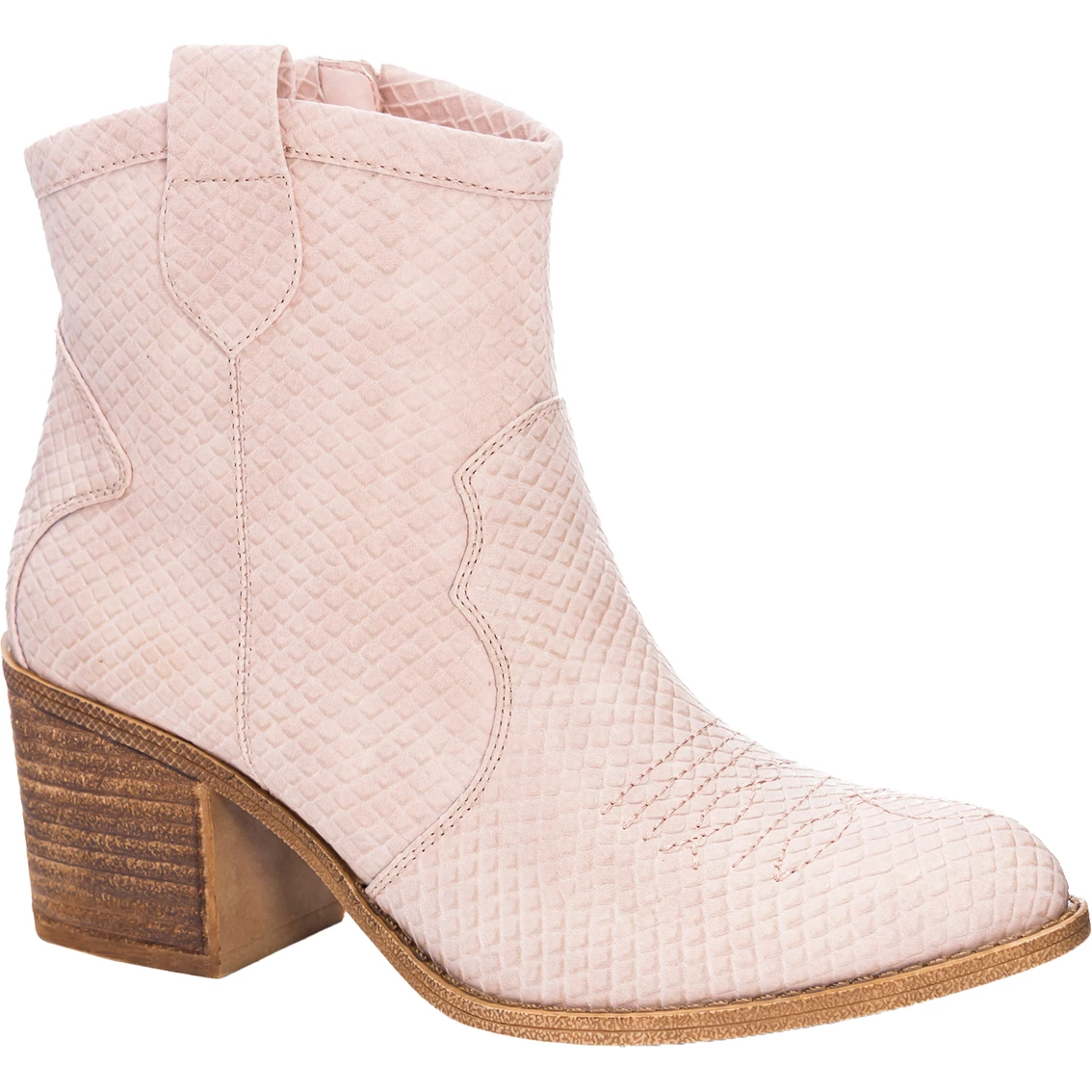 The Unite Booties from Dirty Laundry plays into the Western trend with their double pull tab, shape and stitching and the blush color makes it fun! With a faux wood stacked heel and snake texture, it’s just the right amount of style for any outfit. Pair with flirty dresses, jeans, or shorts and cute tops! Unite is the perfect everyday bootie! Style: UNITE.