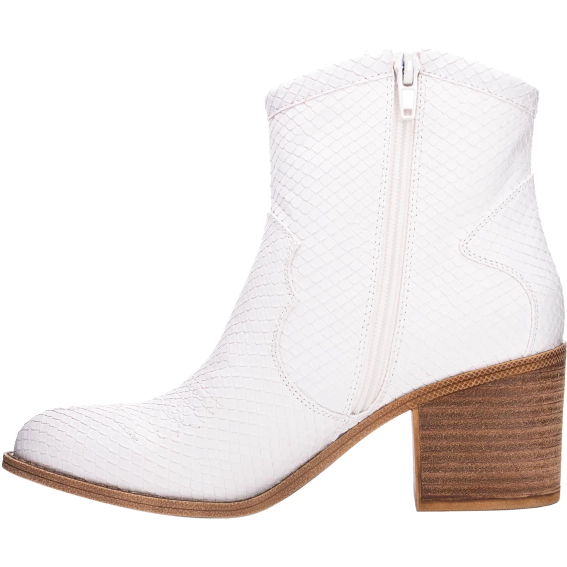 The Unite Snake Bootie from Dirty Laundry plays into the Western trend with its double pull tab, shape and stitching. The white color makes it easy to style back to any outfit. Pair with flirty dresses, jeans or shorts and cute tops! Unite is the perfect everyday bootie! Style: UNITE100.