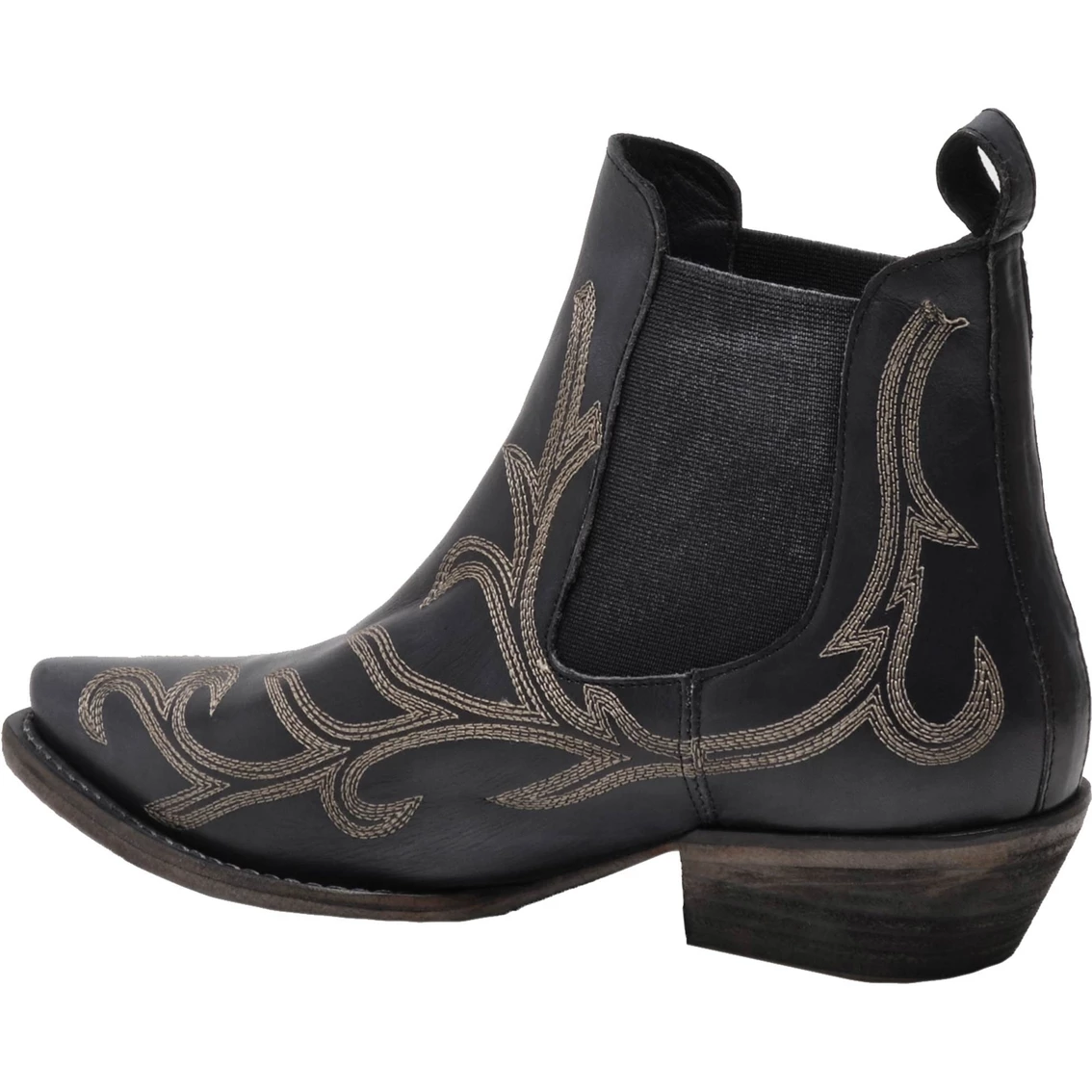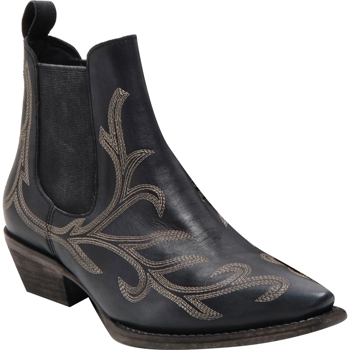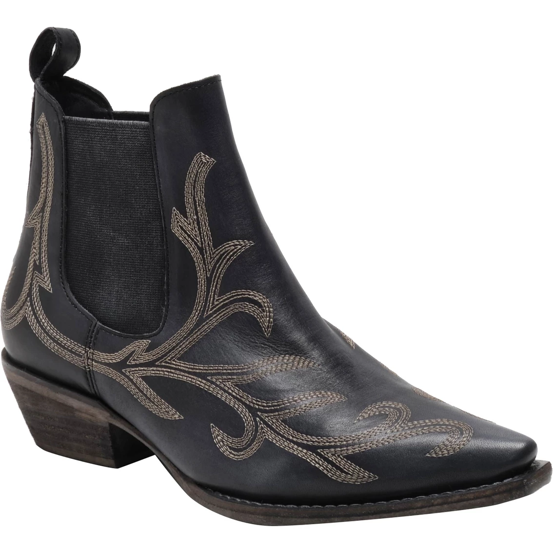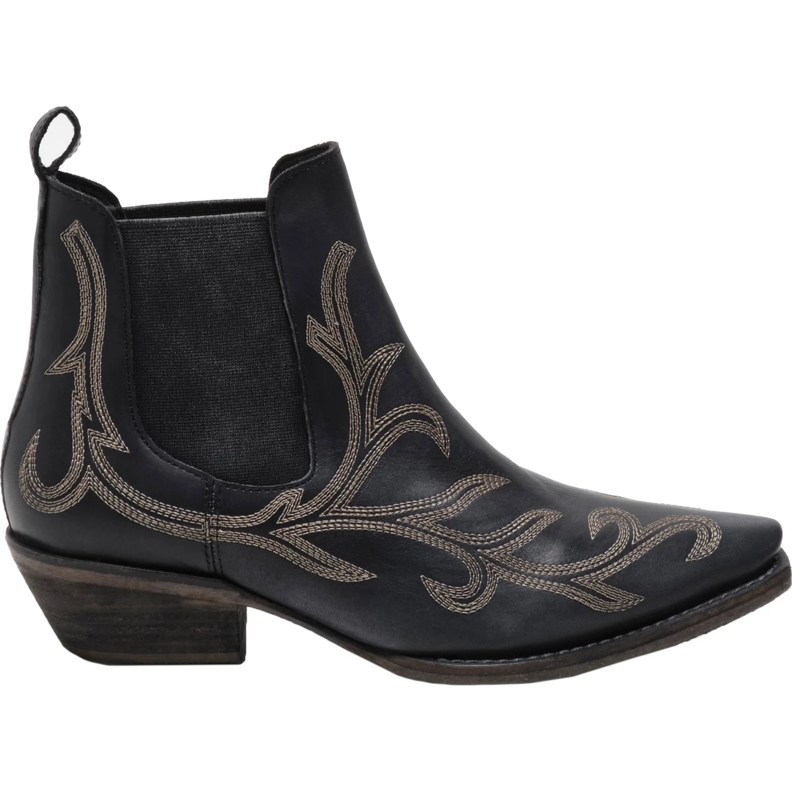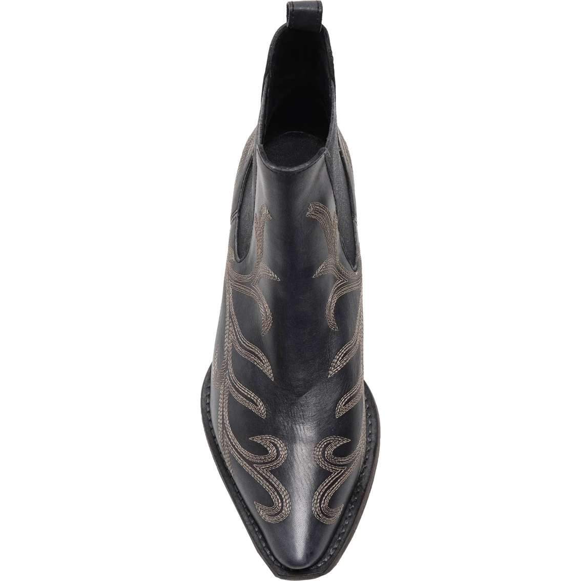 This is a comfortable leather boot from Free People. It has embroidered detail and a pointed toe. Style: OB1433014.