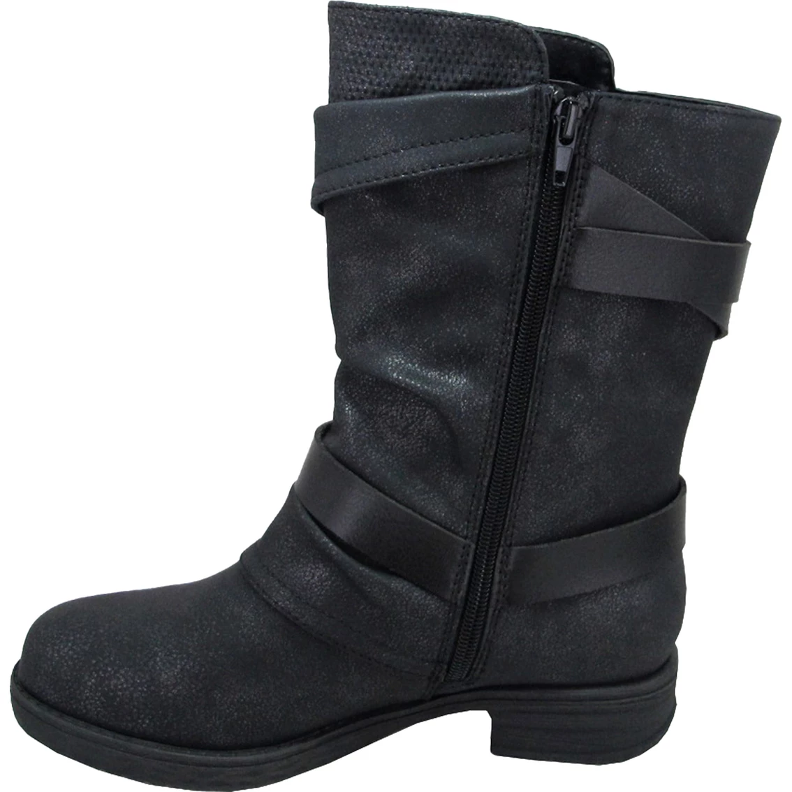Jellypop Provide Boots are a moto style boot with side zip for easy on and off. The boots also have a low heel with buckle strap detail. Style: J11BES008001.