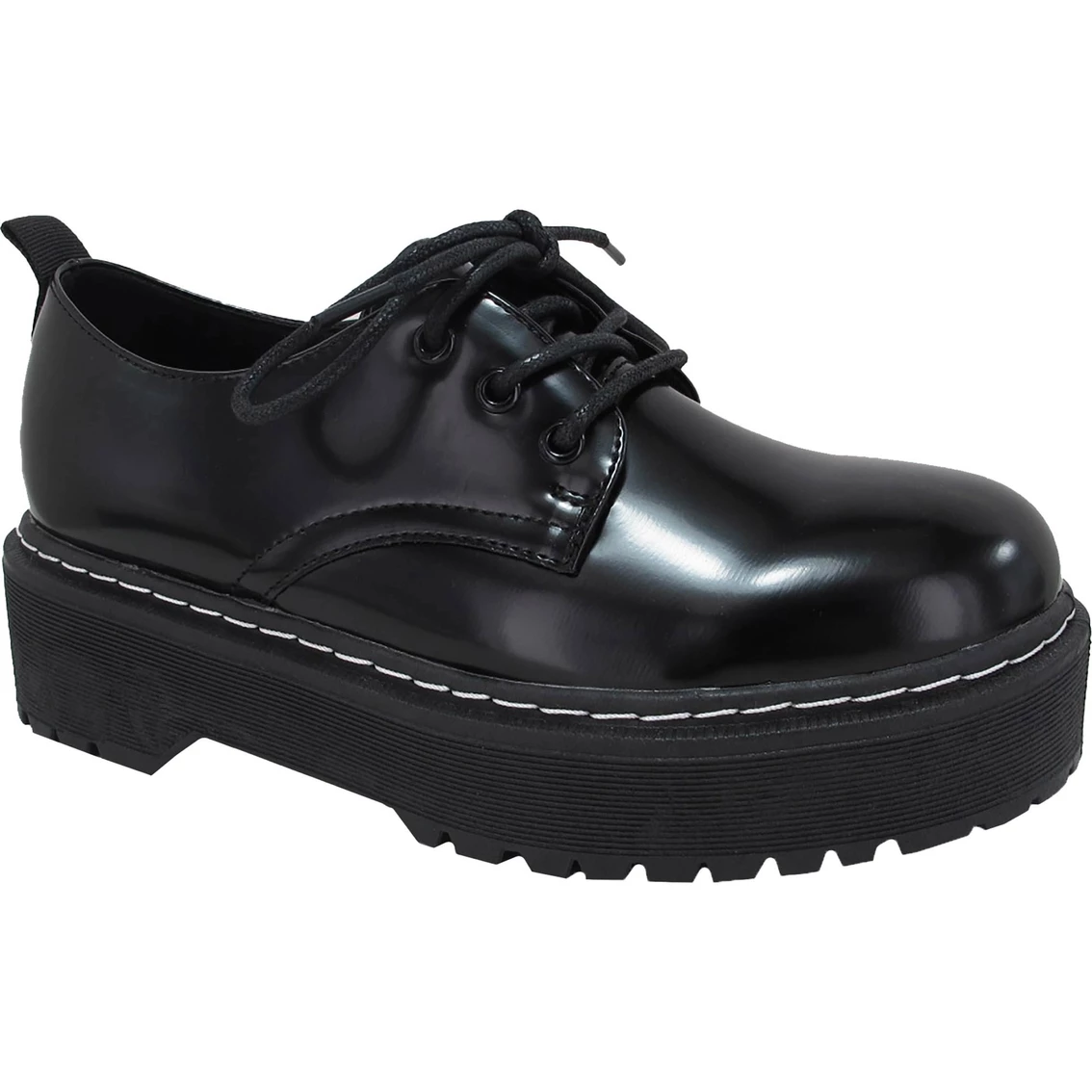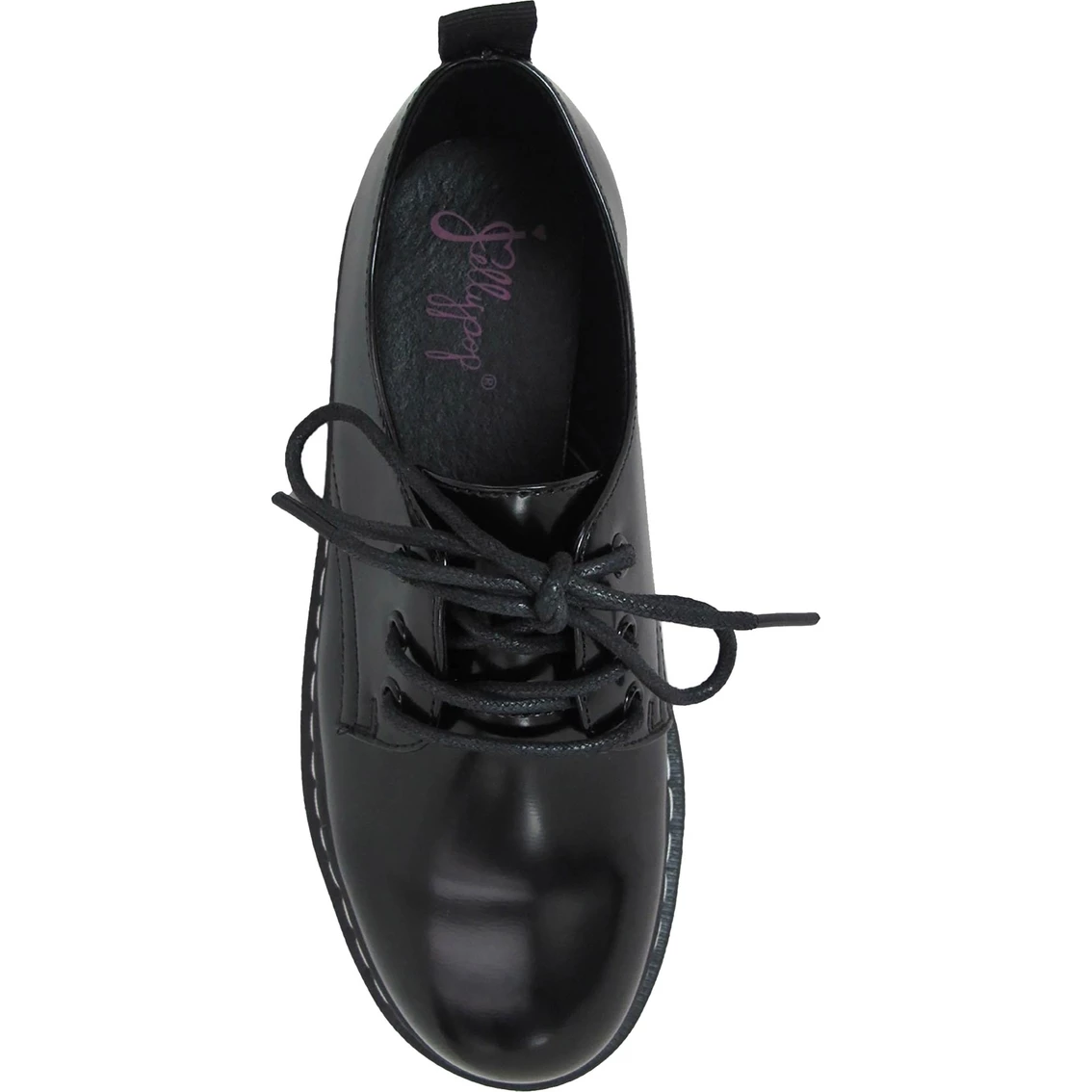 This platform style black loafer from Jellypop Shoes is designed with a lug sole. They have a lace-up closure and can be worn with dressy or casual outfits, whatever you prefer. Style: JZFTSM008001.