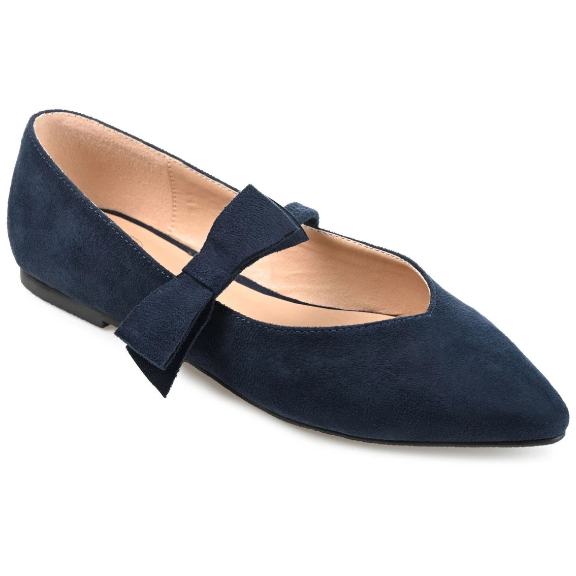 In these Mary Jane flats, you’ll always take on the day with confidence. The Aizlynn by Journee Collection is a pointed-toe flat detailed with a strap at the vamp topped with a darling bow accent. This timeless look fits like a dream, thanks to the soft vegan leather and padded insole.