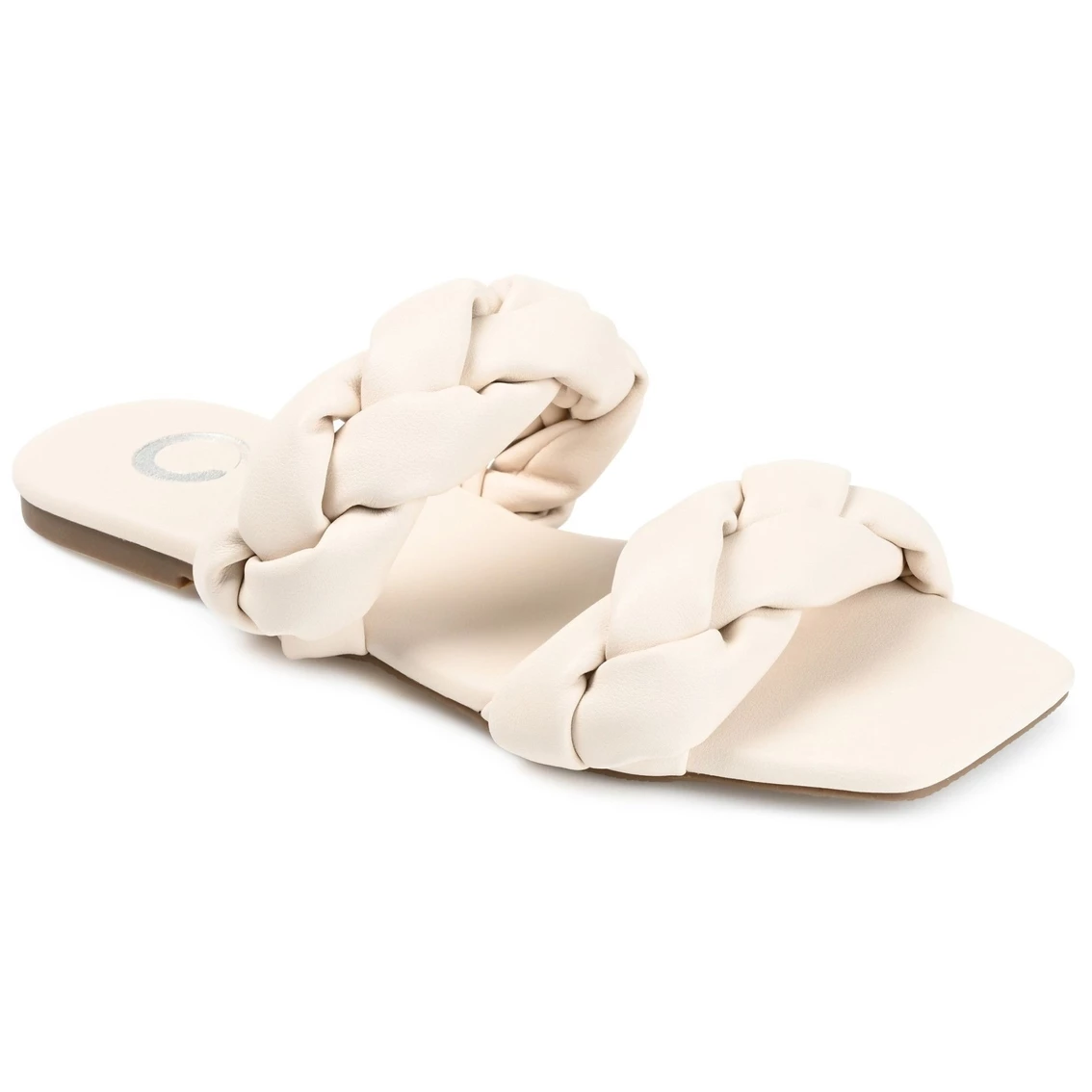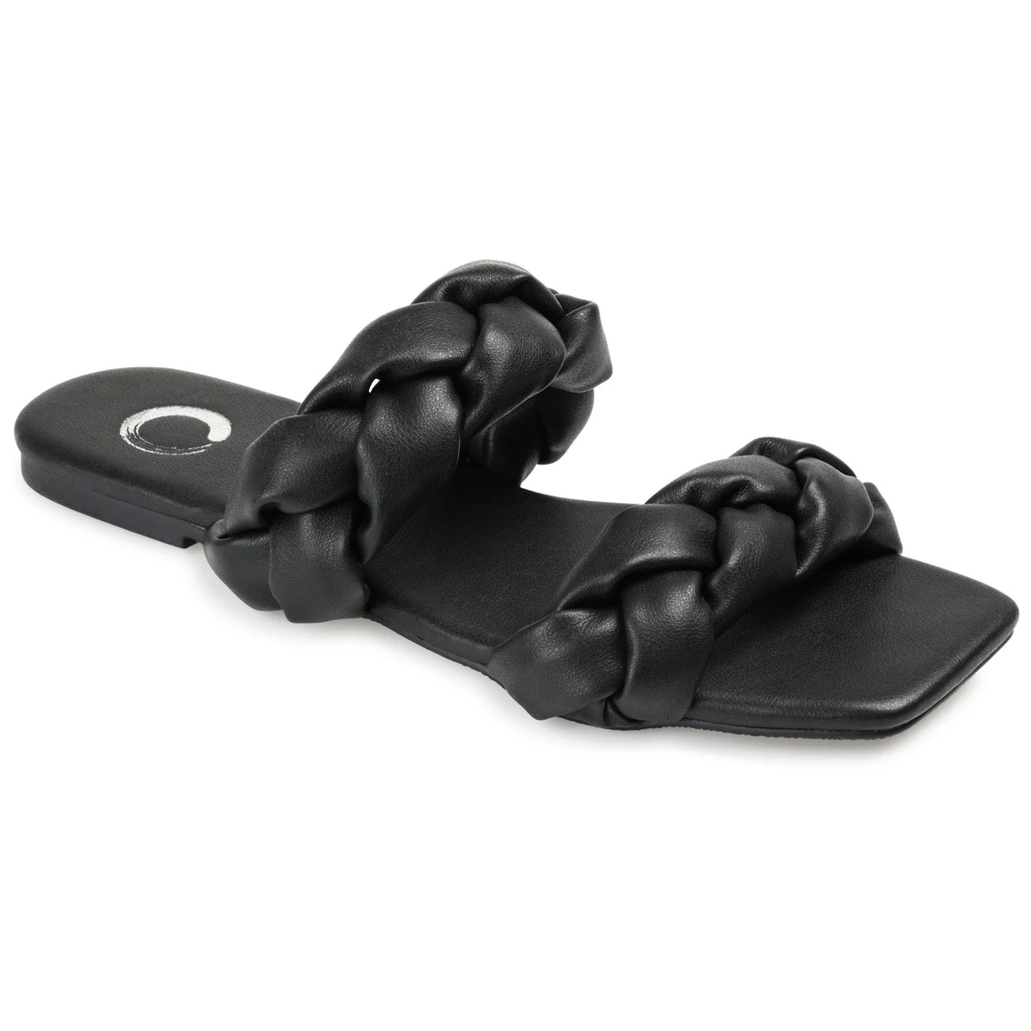 The hottest look this summer, the Arietta by Journee Collection. This square-toed sandal features braided straps at the vamp for a modern touch. This breezy style is finished with a padded footbed and soft vegan leather.