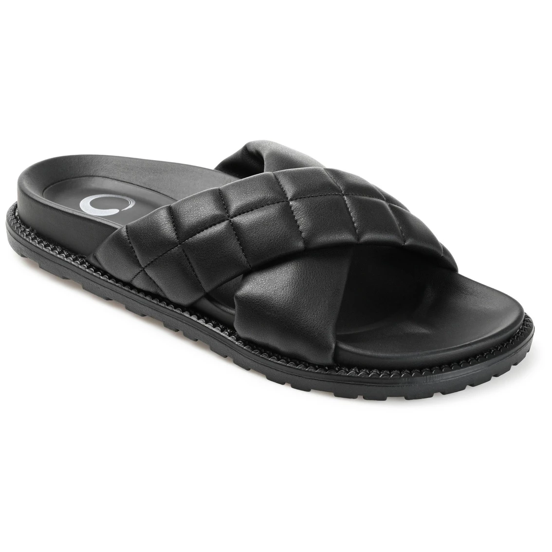 Summer style made easy. The Aveena by Journee Collection is an effortless slide detailed with a padded footbed. Puffed quilted straps made with vegan leather top the design for a retro vibe.
