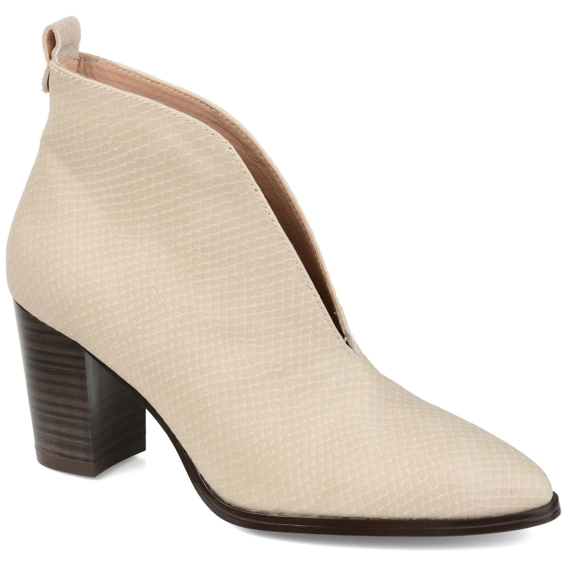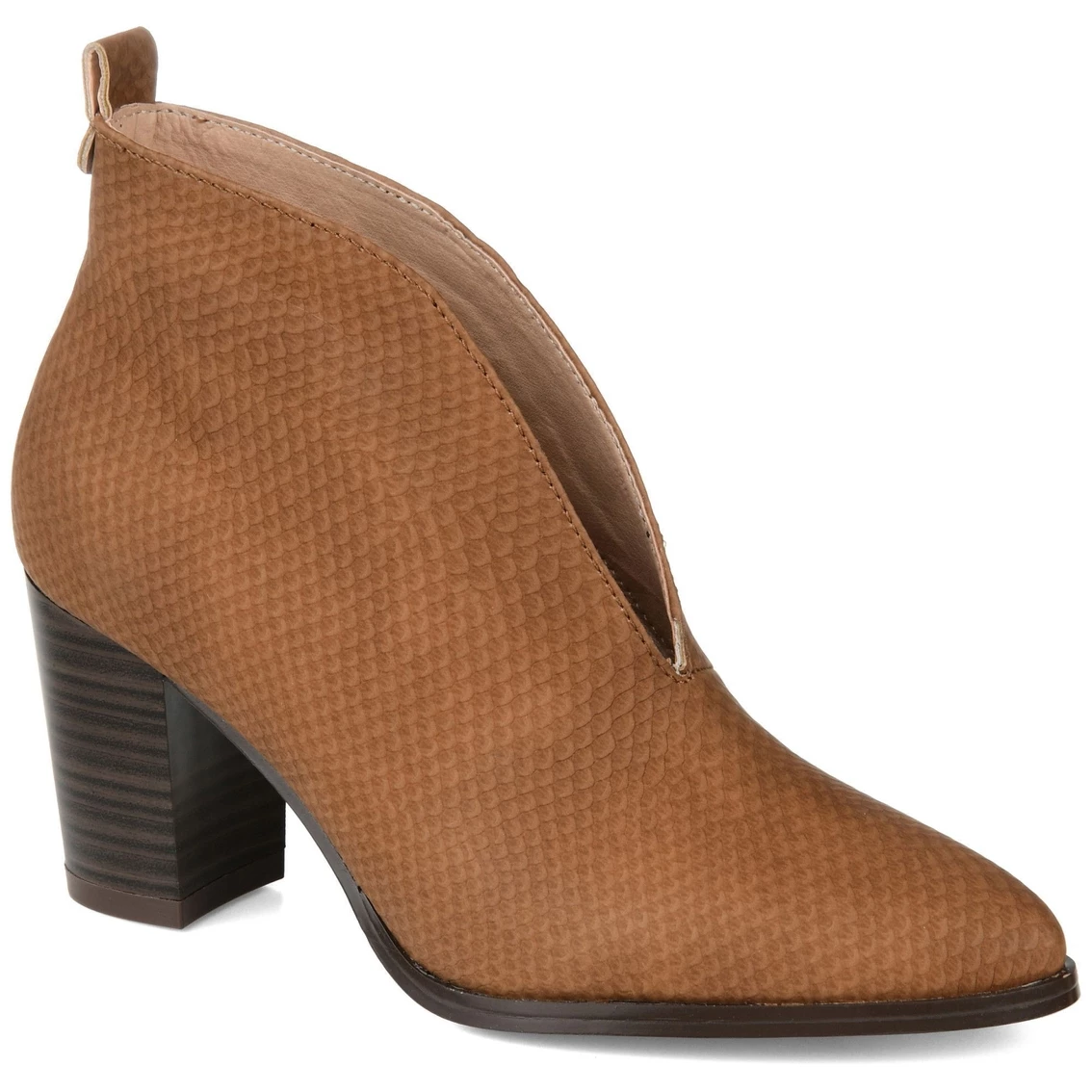 The deep βVβ center cut creates an intoxicating bootie. The textured pattern plus the faux leather material and the slip-on style makes this bootie appealing for all ages. The almond toe shape is perfect for your every day wear. Try it out today!