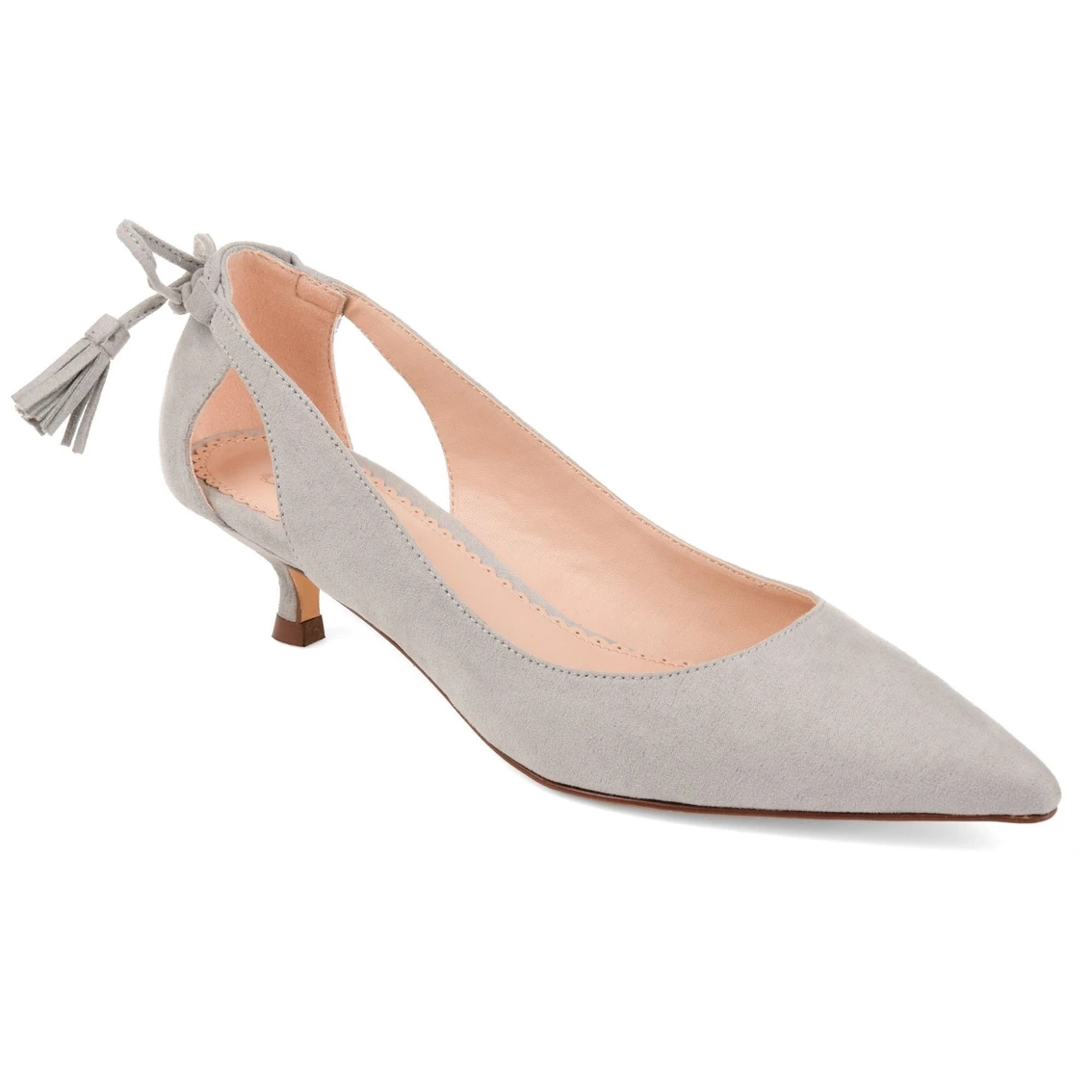 Pointed toe perfection comes with the Bindi heel by Journee Collection. This classic kitten heel features a sleek pointed toe with side cut-outs, and a fringe bow design. Unique and class combine to make this fabulous heel.