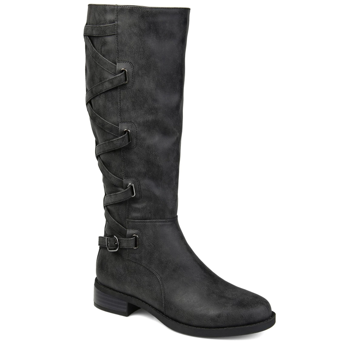 If you love a good riding boot, then youβll love the Carly boot by Journee Collection. This boot has such a different look to it with the zig zag lace detail. Itβs so quirky and can easily spice up any winter outfit. This boot also features an almond toe shape and a distressed coloring.