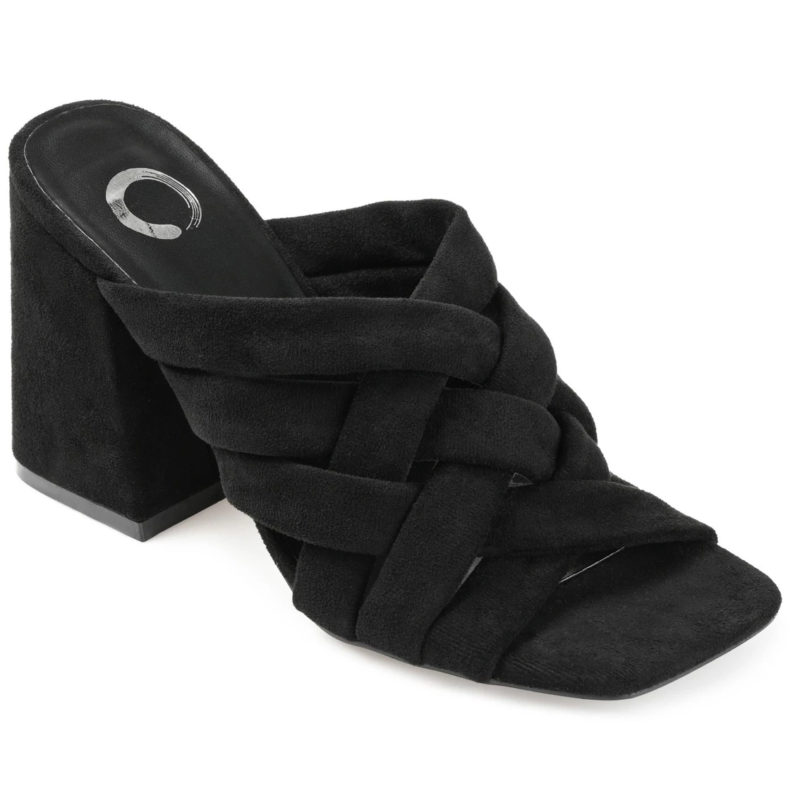 Slip into a style that sizzles with the Dorisa by Journee Collection. This slide-on style features the softest vegan leather uppers and a padded footbed. Crisscrossed straps, a covered block heel, and a retro square toe finish this contemporary look.