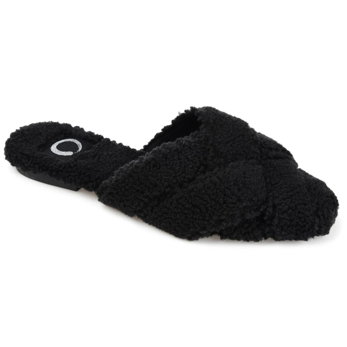 An off-duty design every closet needs, the Serenna by Journee Collection. Shaped with cozy teddy bear faux fur, these slippers are snuggly soft. A crisscross design tops this mule for an elevated look, and a sturdy bottom sole provides durability.
