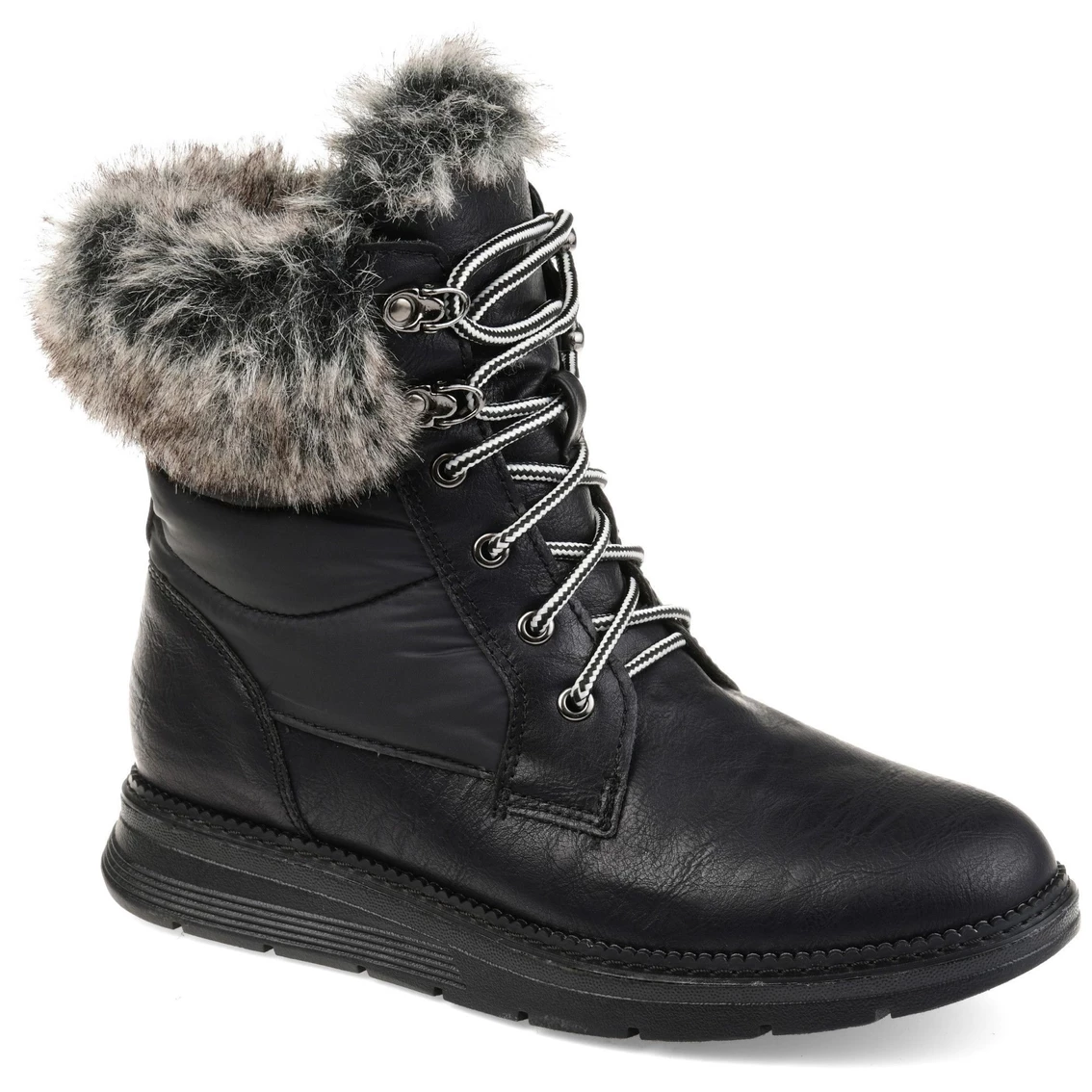 Everyone loves a good fur winter boot, and the Flurry boot by Journee Collection is perfect! This waterproof ankle boot will add something extra to those dull winter wardrobes. Stand out with the thick fur accent, thick outer soles, cool laces, and two-toned material!