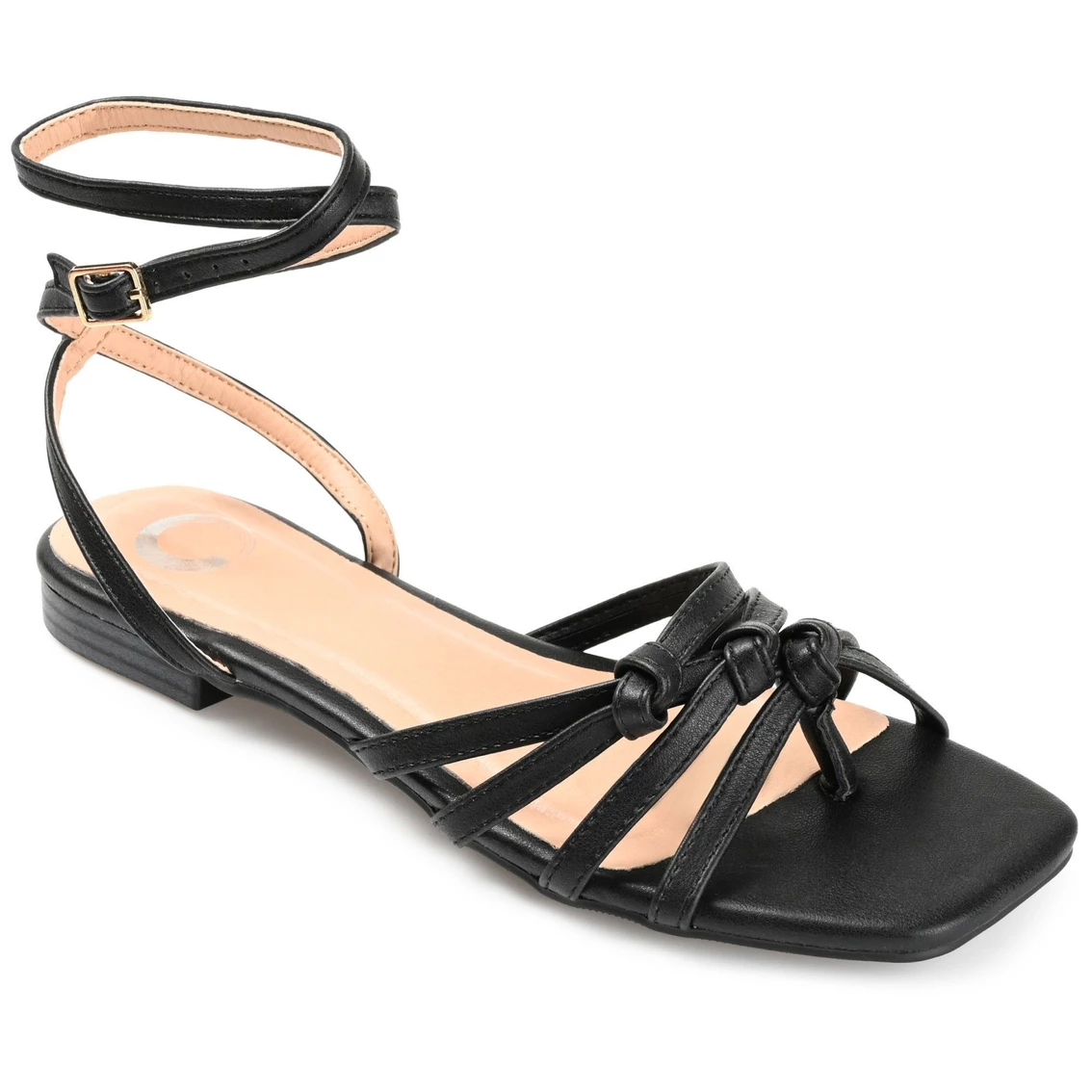 Get wrapped up in the Indee by Journee Collection. A vegan leather wraparound strap at the ankle top this breezy sandal for a contemporary look. A padded insole offers the perfect amount of support, and knot details at the toe add a fresh look.