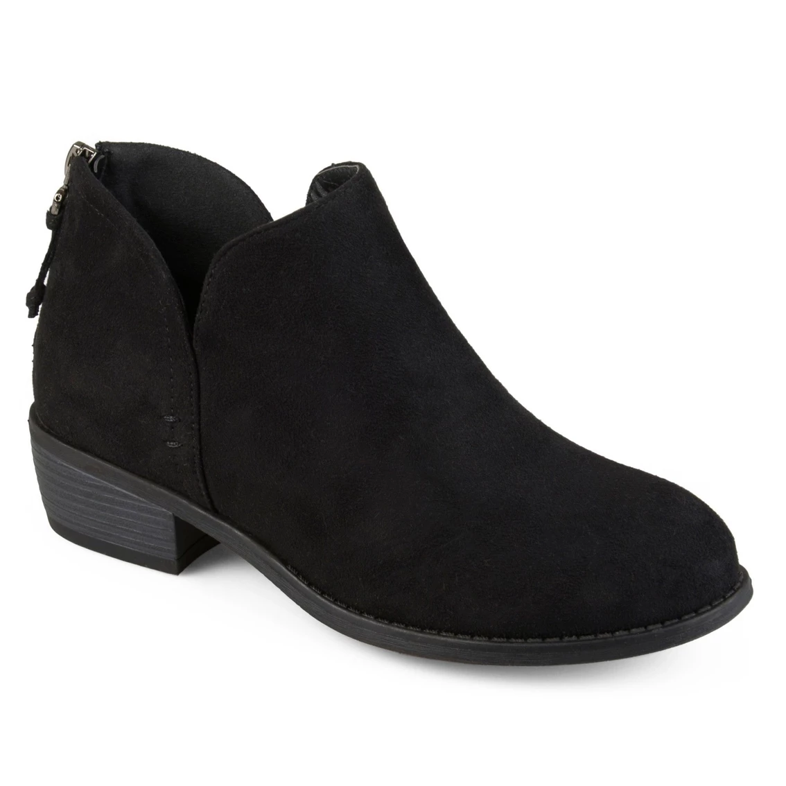 Show off versatile style with the side-split buckle booties by Journee Collection. These ankle booties have soft faux suede uppers that rise to the ankles and highlight a side-split detail and back zippers with tassel accents.