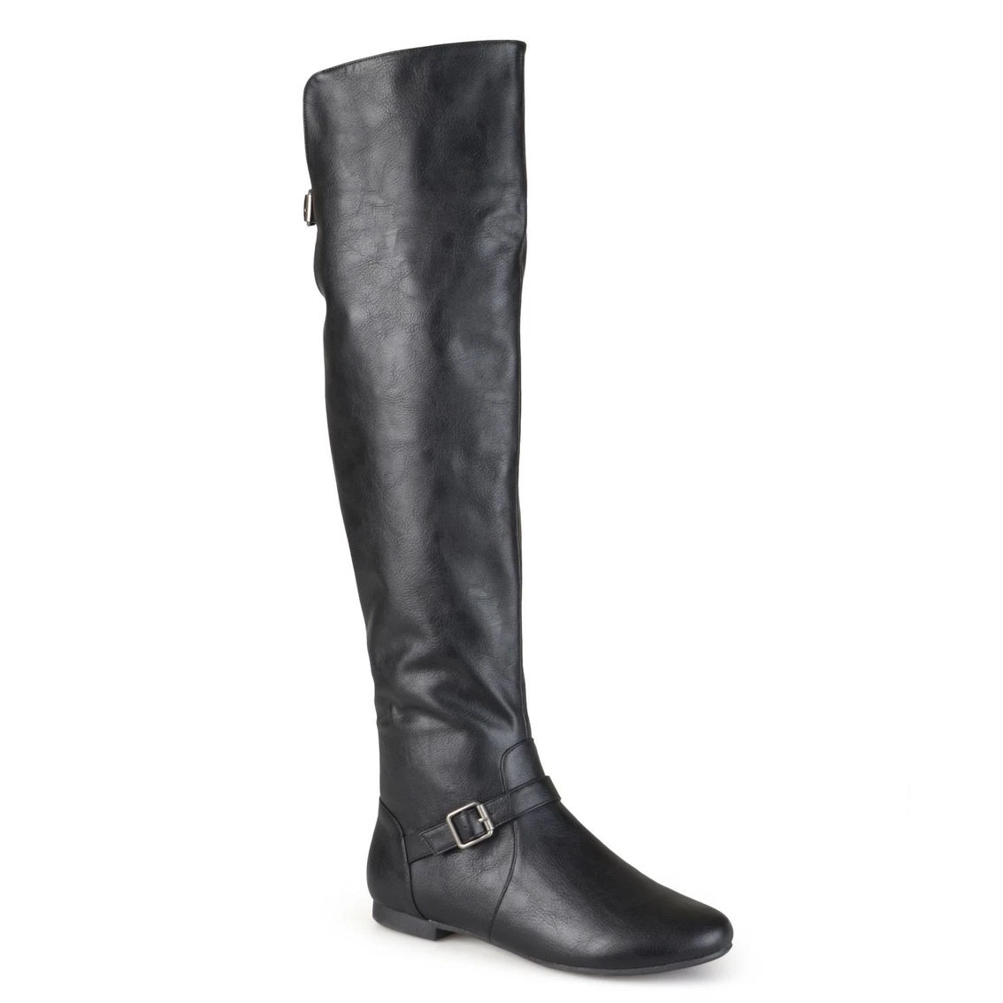 Dress in season-chic style with sleek riding boots by Journee Collection. These stylish boots feature supple faux leather uppers with vamps that rise in an over-the-knee style. Classic round toes complete the design.
