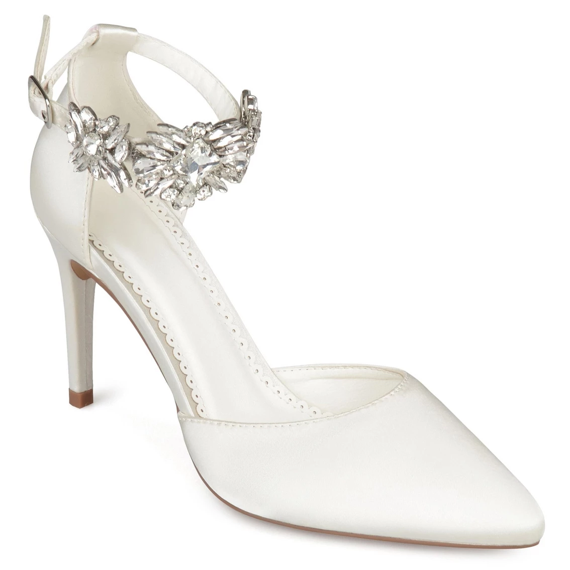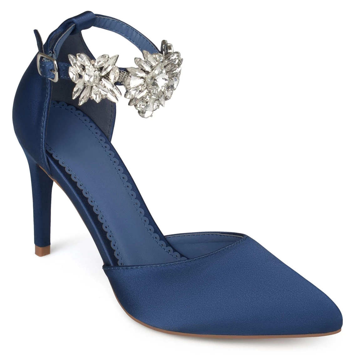Show off your chic style with these pointed toe pumps by Journee Collection. These pumps feature soft sateen fabric with a stylish rhinestone ankle strap. Closed back heels and a dβOrsay design provide an elegant look for any occasion.