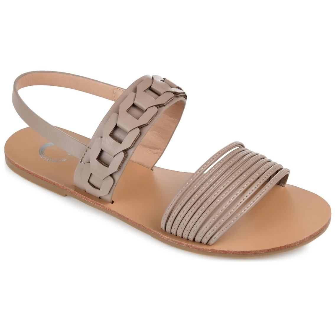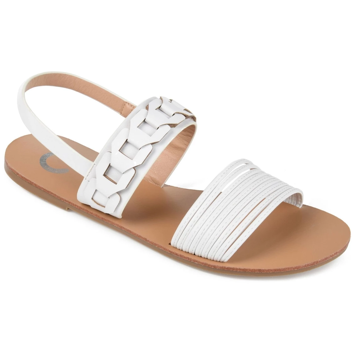 The Marisa by Journee Collection just might be the perfect blend of posh and casual. With multi-strap details at the toe and an interlocking design, you’ll be walking on sunshine. This slip-on sandal is finished with a simple slingback and soft vegan leather uppers.