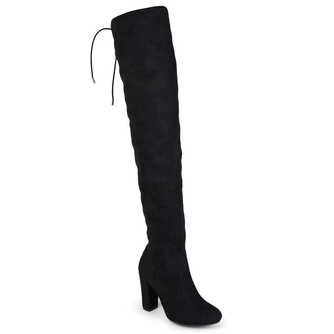 Step into the chicest style this season with over-the-knee boots by Journee Collection. A structured pump design shows off sky-high faux fabric shafts that rise over the knees. Round toes and chunky high-heels finish the look.