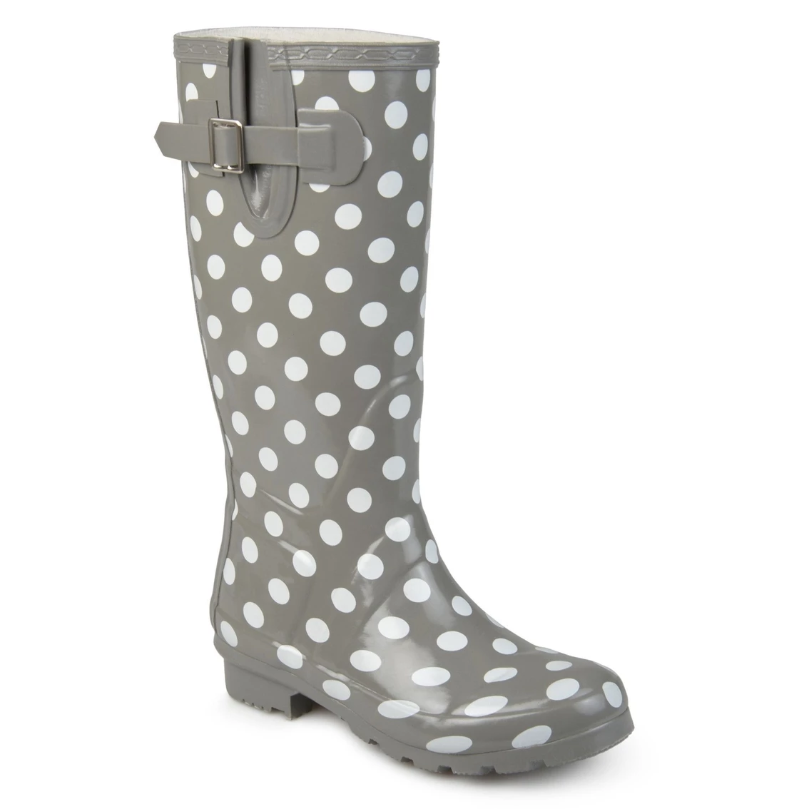Display your cute style with these pull-on rain boots by Journee Collection. These boots are made of water-resistant rubber uppers that rise above the calves with a pull-on design. Thick textured outsoles create traction to complete the chic design.