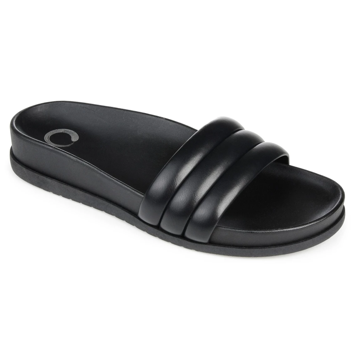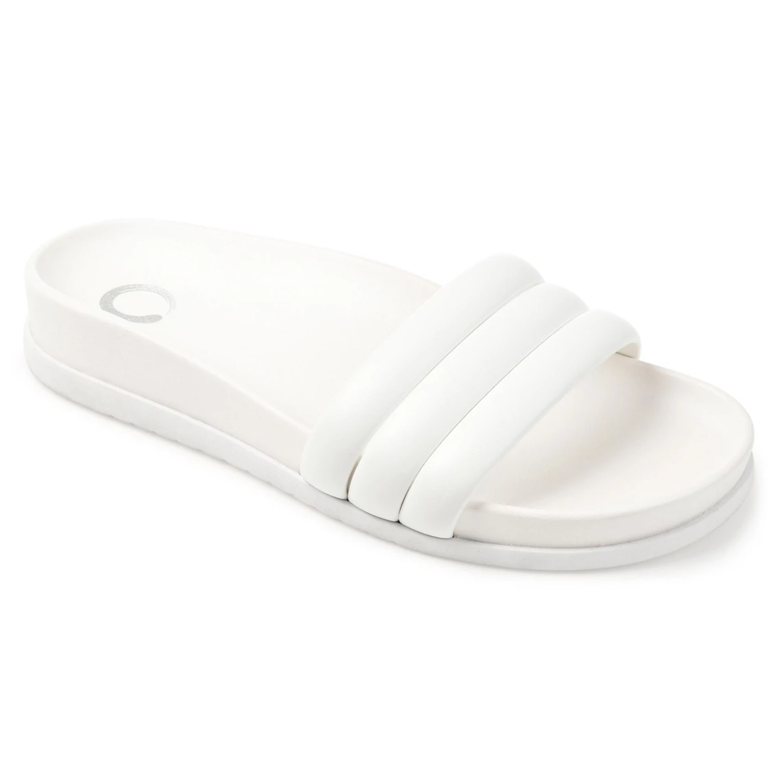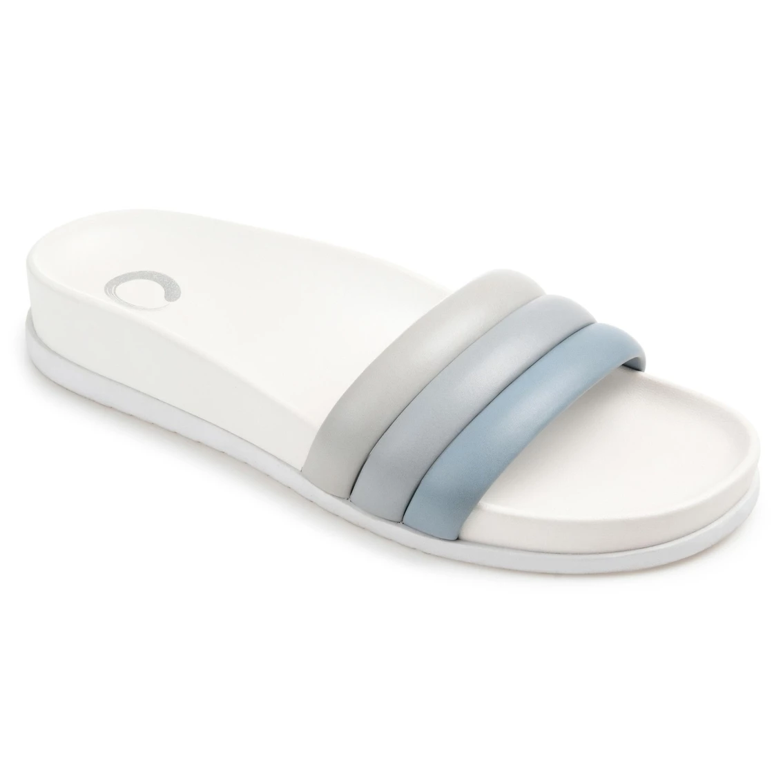 An at ease sandal you can wear to the pool or park. The Nellee by Journee Collection is a sporty slide detailed with a formed padded footbed. Colorful triple puffed straps top the design for a retro vibe.