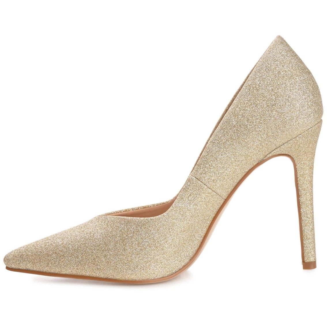 This shimmering stiletto is a total showstopper. The Ninna heels by Journee Collection are dance floor approved thanks to the man-made uppers and padded footbed. A pointed-toe and glitter details throughout boldly finish the design.
