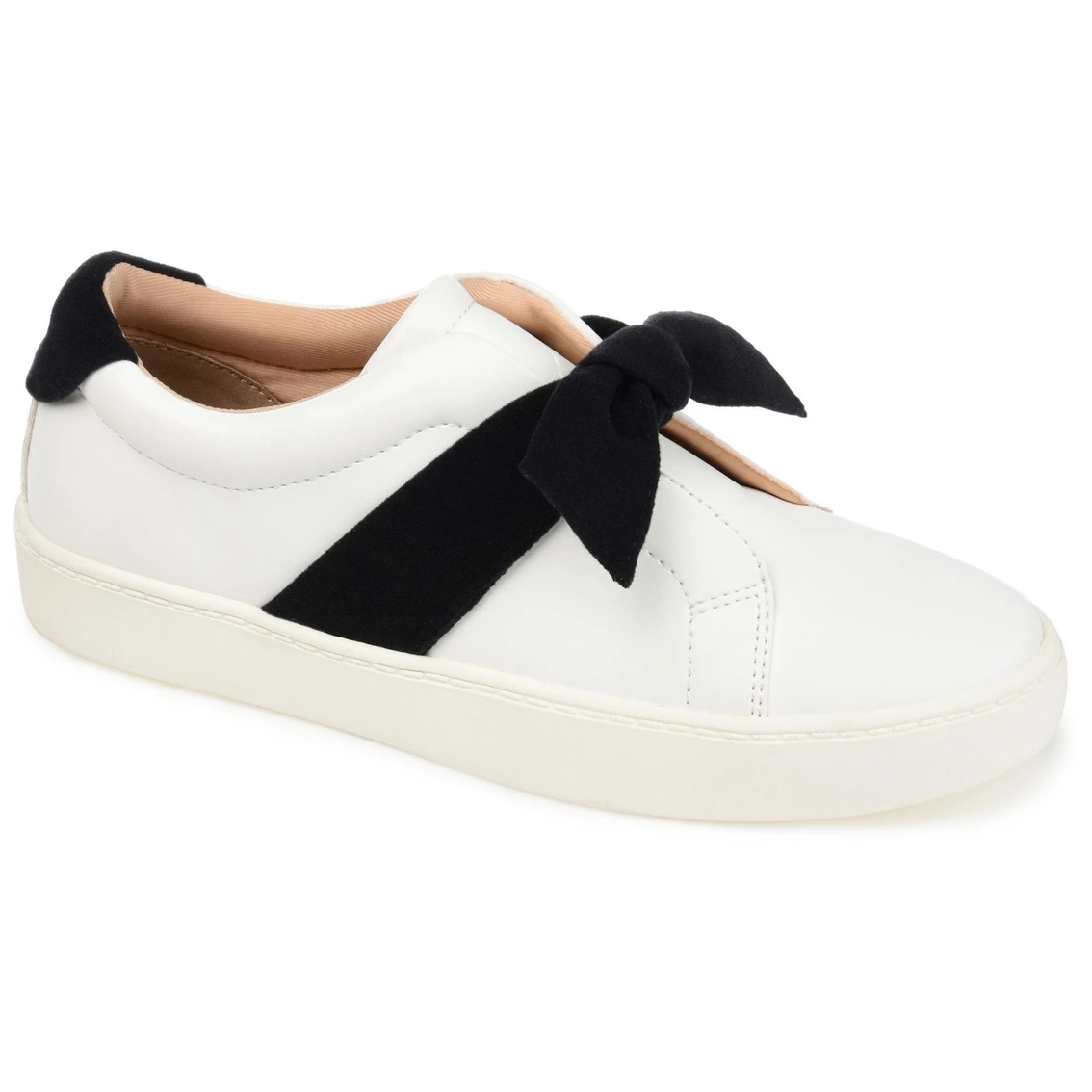 The Ash ditches the traditional lace-up detailing seen on sneakers for a fresh-looking fabric knotted bow. These everyday slip-on kicks by Journee Collection are detailed with a color contrasting cushioned ankle and a dreamy 8 mm Tru Comfort Foamβ’ insole for long-lasting comfort. Fabric lining and a clean 1-in rubber platform sole completes the look.
