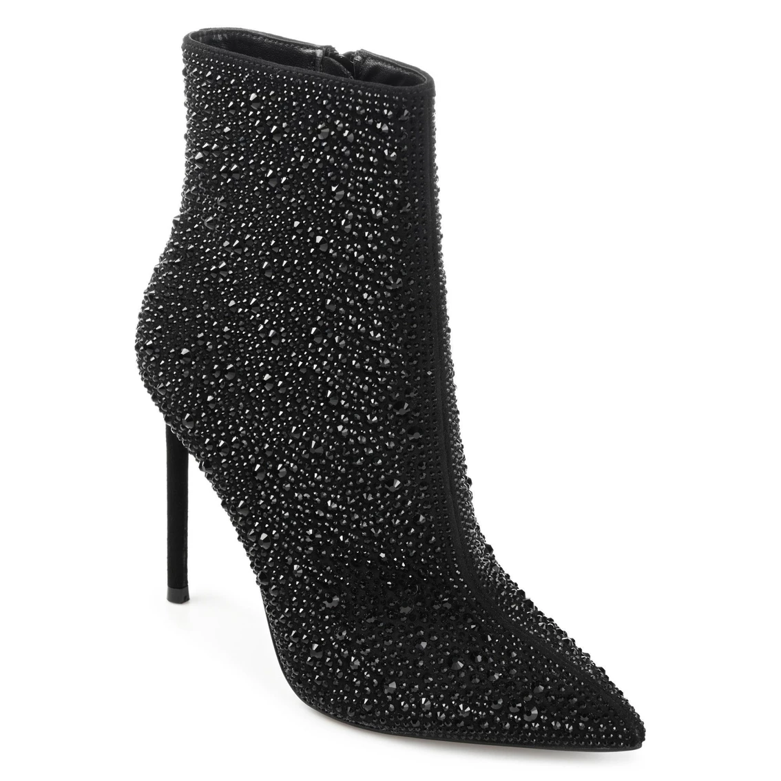 Add some glam to your ensemble with the shimmering Alexis bootie by Journee Collection. These fabulous stiletto heel booties are styled with a sassy pointed-toe and man-made uppers covered in rhinestone details. With a 4 mm Tru Comfort Foamβ’ footbed lining the insole, you’ll always feel comfy in these.