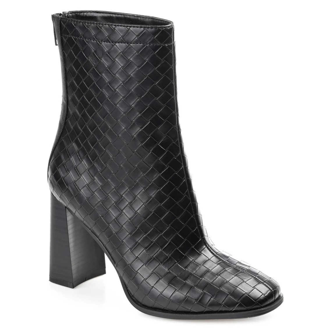 A look borrowed from the runway, the Brielle by Journee Collection. These modern booties feature woven textured leather uppers detailed with a square-toe and chunky block heel. A 4 mm Tru Comfort Foamβ’ insole makes them a breeze to walk in, and a back zipper detail at the ankle makes them easy to pull on.