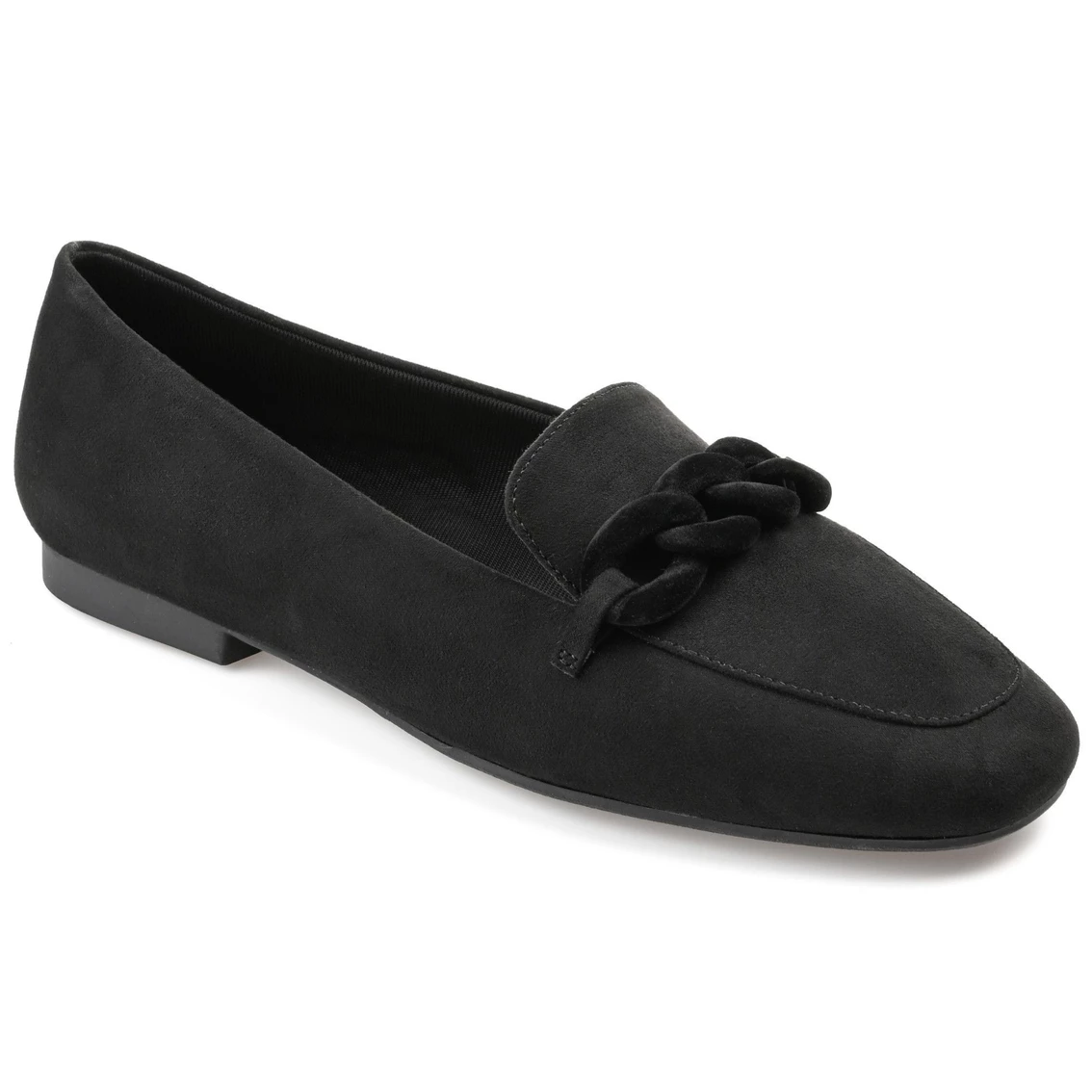 A fabulous finish to your everyday looks, Cordell flats by Journee Collection. This effortless slip-on vegan leather loafer features a supportive 4 mm Tru Comfort Foamβ’ footbed and a roomy square toe. Twin notch details at the topline and a covered chain accent crown the design.