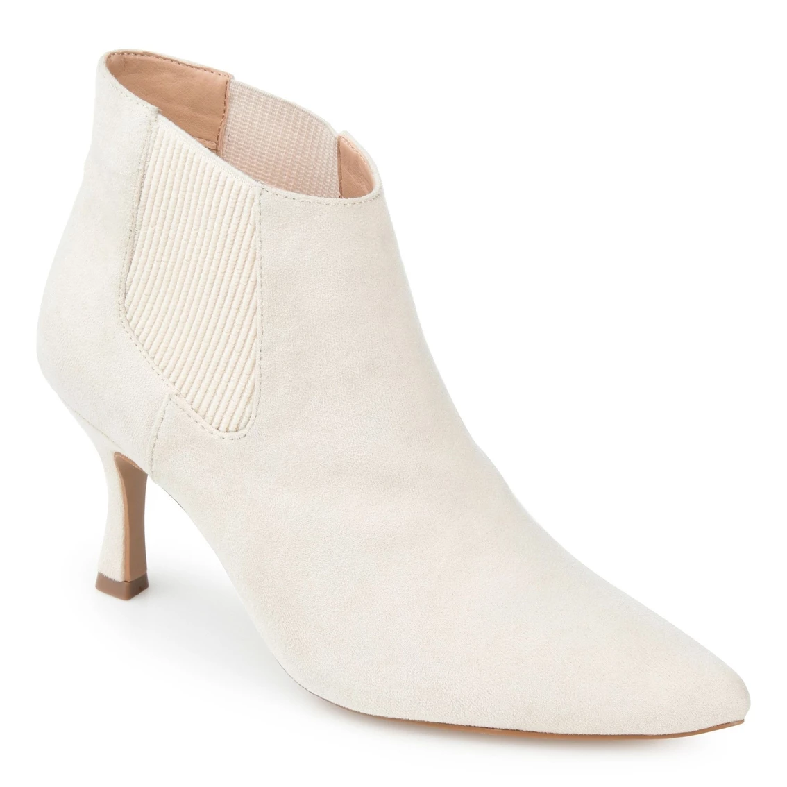 You’ll find yourself wearing the comfortable but classic Elitta bootie by Journee Collection everywhere. This wide-width chelsea bootie features stretch gore panels at the ankles, soft vegan leather uppers, and a supportive 4 mm Tru Comfort Foamβ’ footbed for the perfect fit. A pointed toe and an hourglass heel make this style super chic.