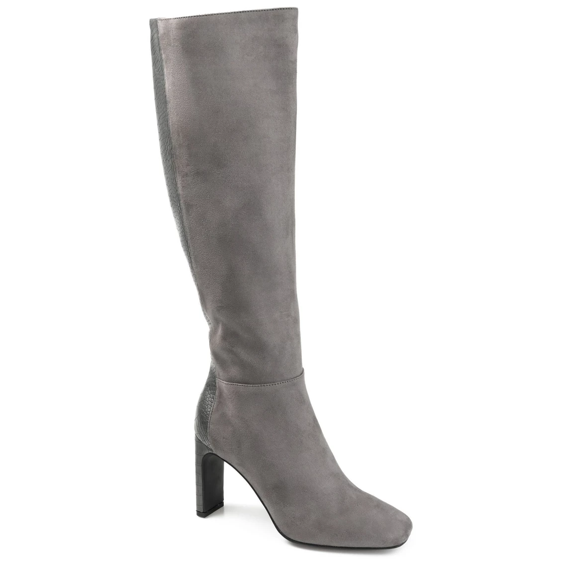 A fashion-forward look for fall, the Elisabeth boot by Journee Collection. Vegan leather two-toned details and a retro square-toe give this extra-wide calf boot a subtle twist. This chic design is finished with a zipper entry and a 4 mm Tru Comfort Foamβ’ insole.