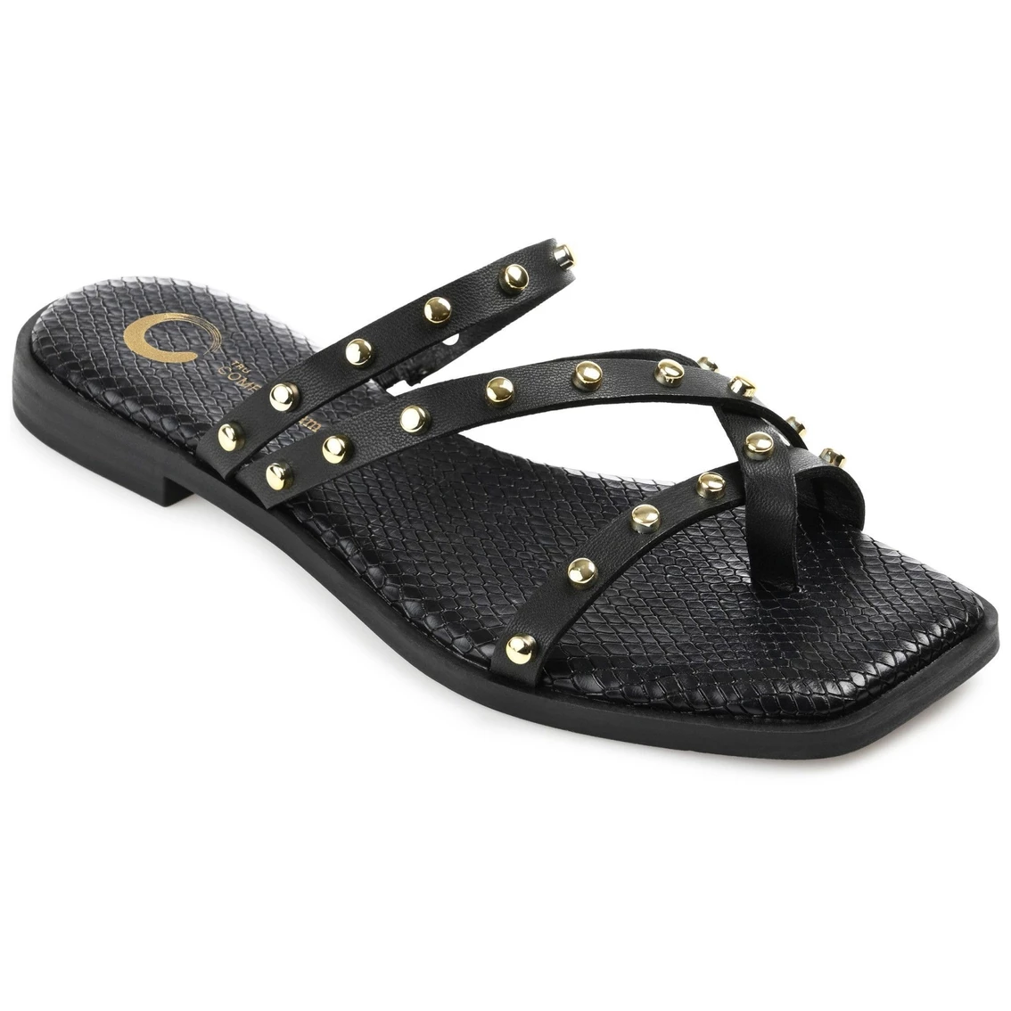 Cool and oh-so-comfy, the Fanny by Journee Collection. This multi-strap slide fits like a dream with its soft vegan leather uppers and 4 mm Tru Comfort Foamβ’ insole. Studded details crown this edgy look.
