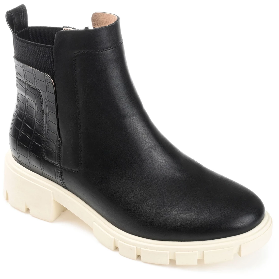 The boot for every activity. The Jeeva by Journee Collection is a high-low bootie crafted with our signature vegan leather supported by a grippy lug sole. An inside zipper offers easy entry, and a stretch panel at the ankle paired with a 4 mm Tru Comfort Foamβ’ footbed provides a super comfortable fit.