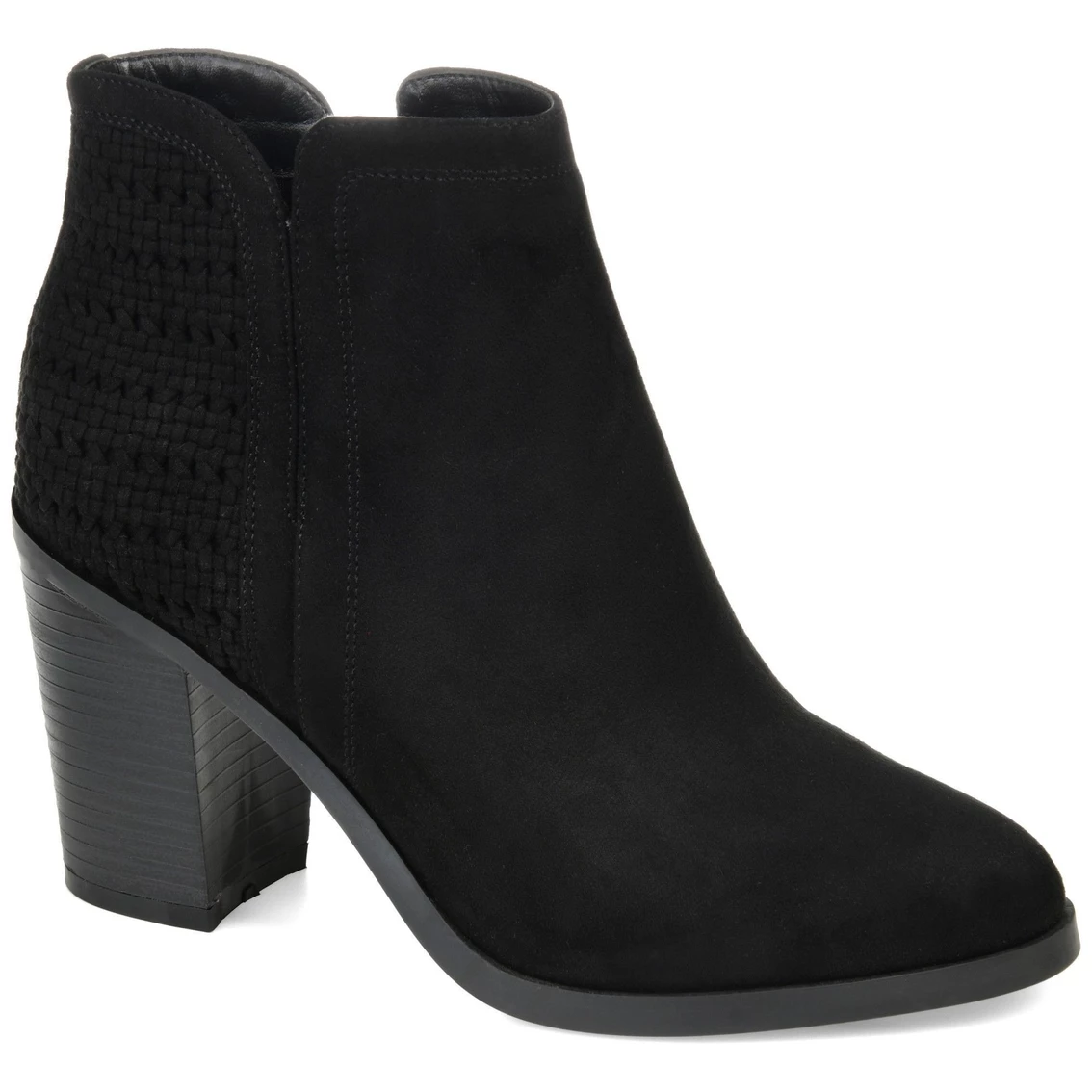 Fall style coming in hot with the Jessica bootie by Journee Collection! This tall, sultry bootie is a new favorite of ours with the soft faux suede material and the woven pattern on the heel. The inside zipper creates easy entry, and the almond toe shape and stacked chunky heel build the perfect bootie!