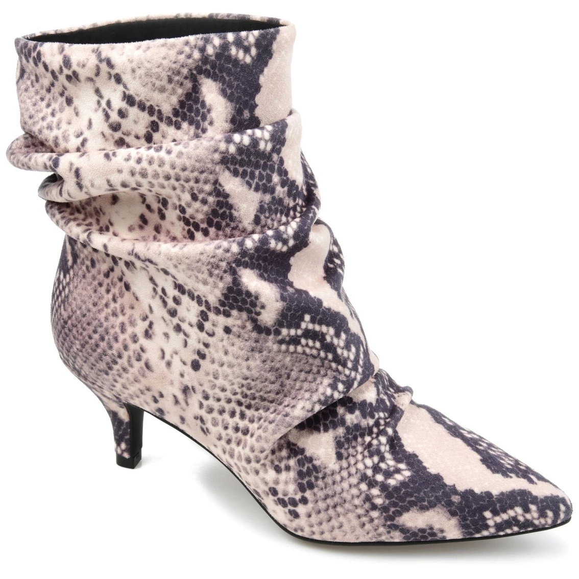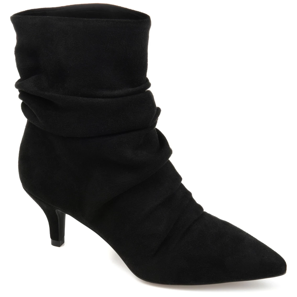 These slouchy booties by Journee Collection are all about modern minimalism. The Jo is a pointed-toe silhouette rendered with vegan leather uppers designed with a low cut shaft that is easy to pull on. A classic kitten heel and 4 mm Tru Comfort Foamβ’ footbed finishes the design for an oh-so-walkable look.