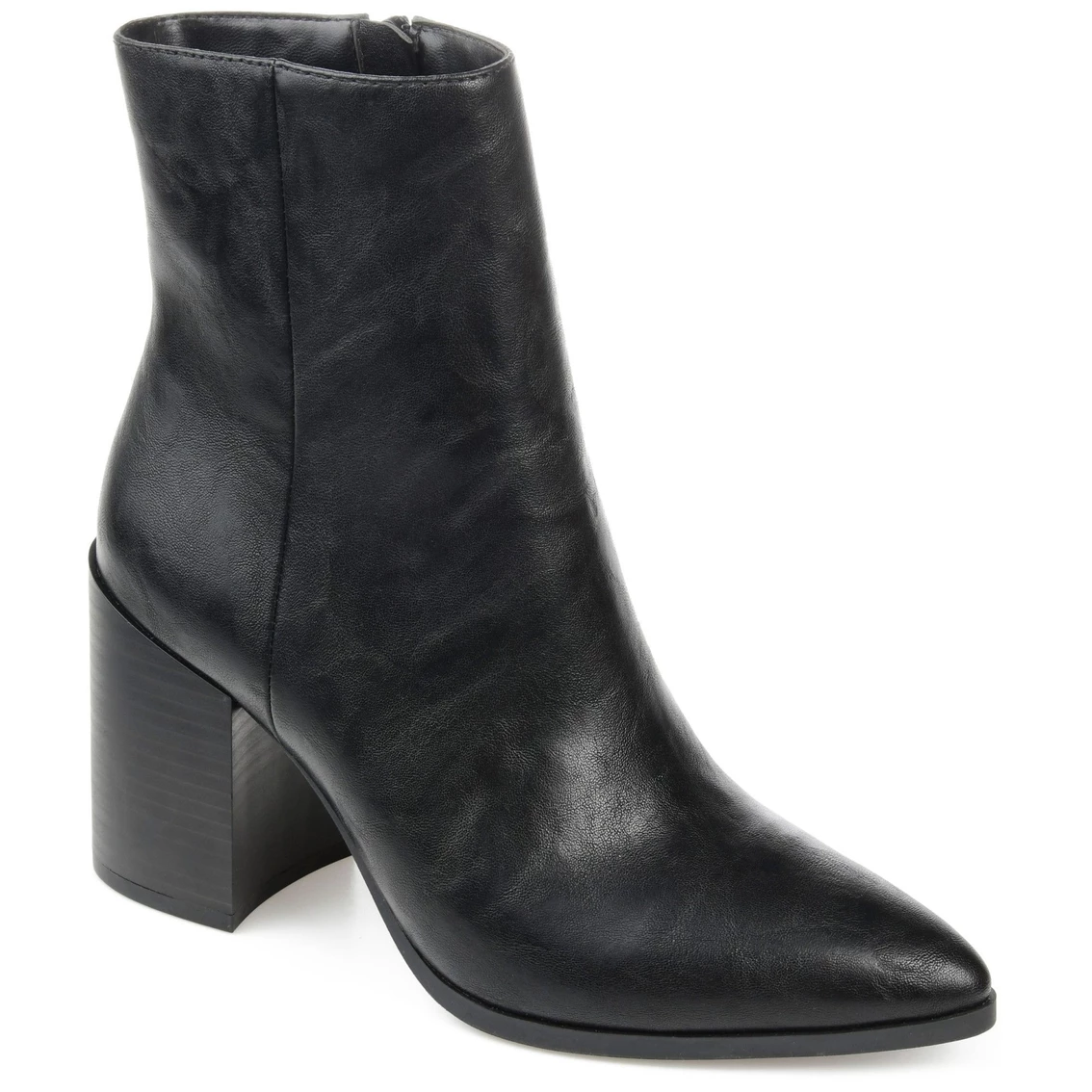 Made to pair with your most fabulous looks, the Kathie by Journee Collection. With an almond-toe and chunky block heel, this vegan leather ankle bootie keeps it street-chic. An inside zipper secures the fit, a 4 mm Tru Comfort Foamβ’ footbed adds all-day support.