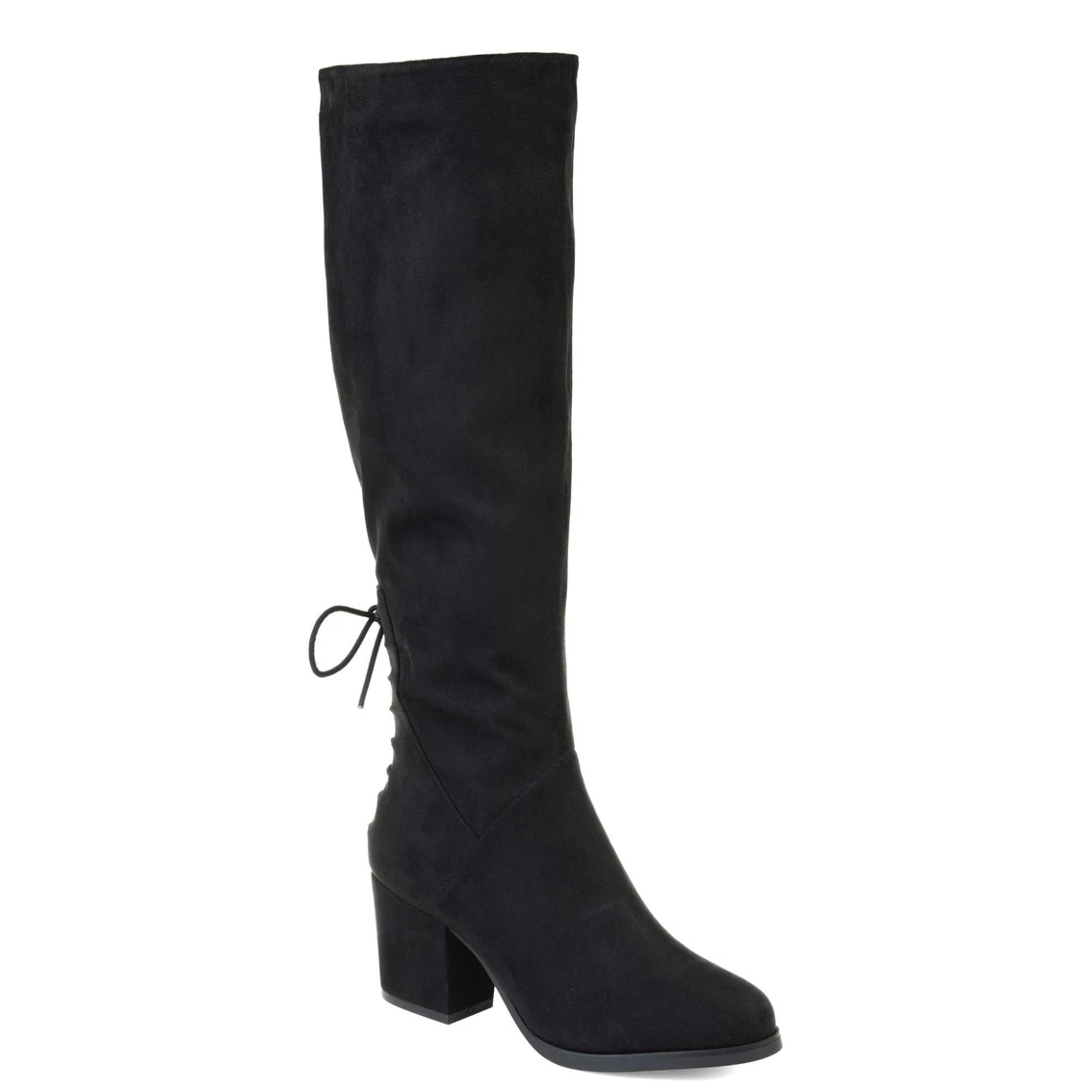 Change it up with the Leeda boot by Journee Collection. This adorable heeled boot features a lace-up detail in the back with a bow to finish it off. There is also a stretch gore on the side as needed. Youβll look fabulous in this beautiful faux suede heeled boot.