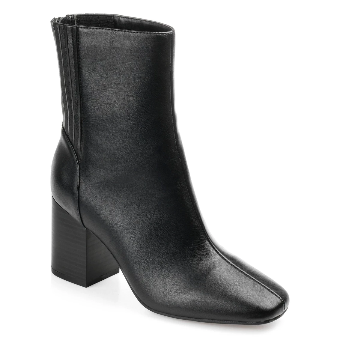 Effortlessly cool details define the Maize bootie by Journee Collection. A seam at the center and square-toe add a chic touch to this vegan leather silhouette. With a 4 mm Tru Comfort Foamβ’ insole and a block heel, this look is oh-so-walkable.