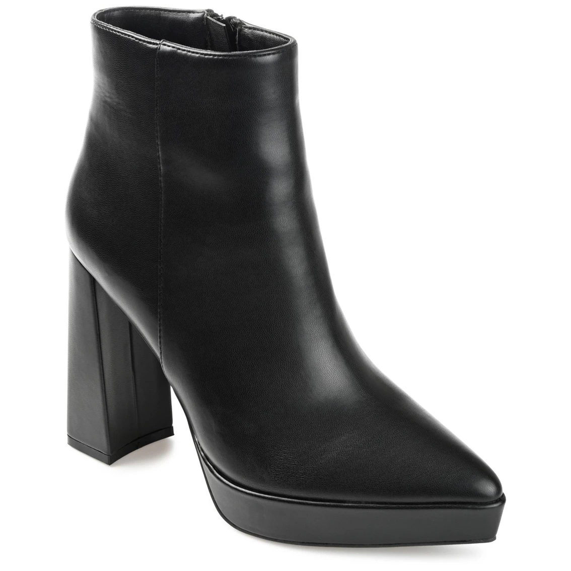 Dress practically but look posh in the Marnnie bootie by Journee Collection. Its smooth leather uppers are detailed with a pointed-toe and inside zipper for a sleek look. The 4 mm Tru Comfort Foamβ’ insole and a covered block heel add a comfortable leg-lengthening lift.
