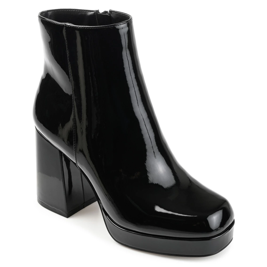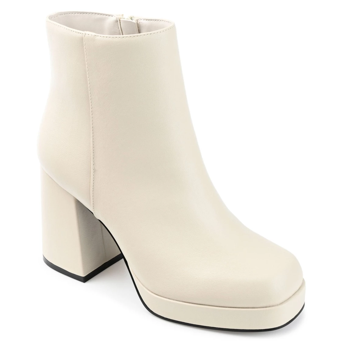 A fashion-forward statement for fall, the Mollie booties by Journee Collection. This platform silhouette features soft vegan leather and a 4 mm Tru Comfort Foamβ’ insole for a comfy fit. The inside zipper, high ankle shape, and square-toe add a 90s vibe to any look.