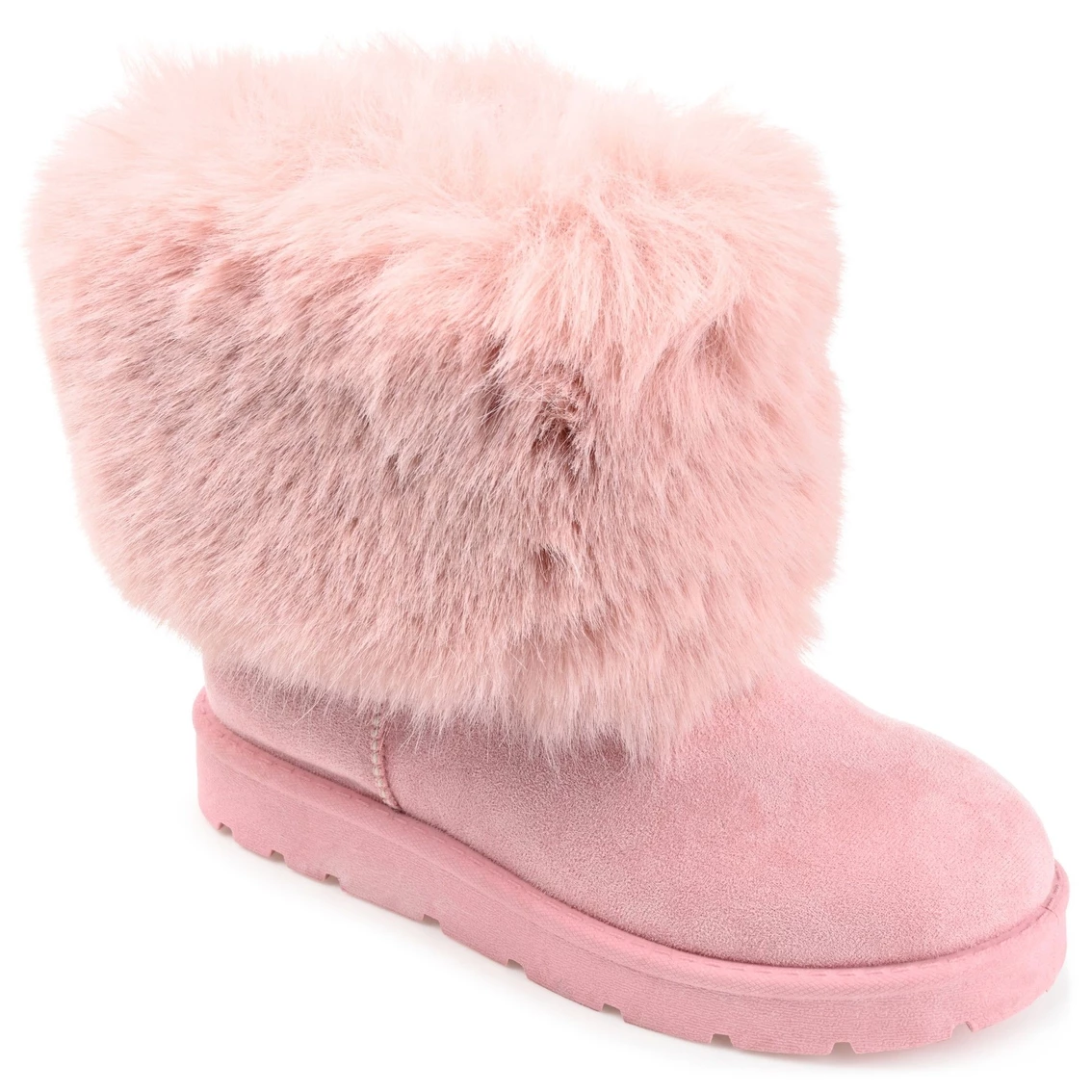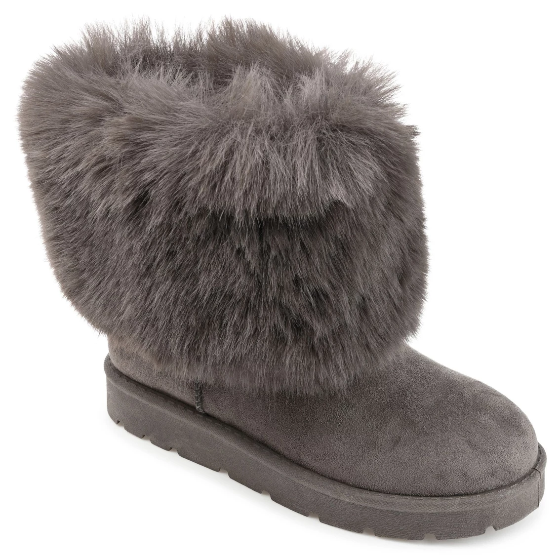 The cozy Y2K inspired boot from your fantasies, the Shanay by Journee Collection. This warm style features soft faux fur lining showcased at the ankles and soft vegan leather uppers. A 4 mm Tru Comfort Foamβ’ footbed resting on a durable outsole allows this dreamy design to offer long-lasting comfort.
