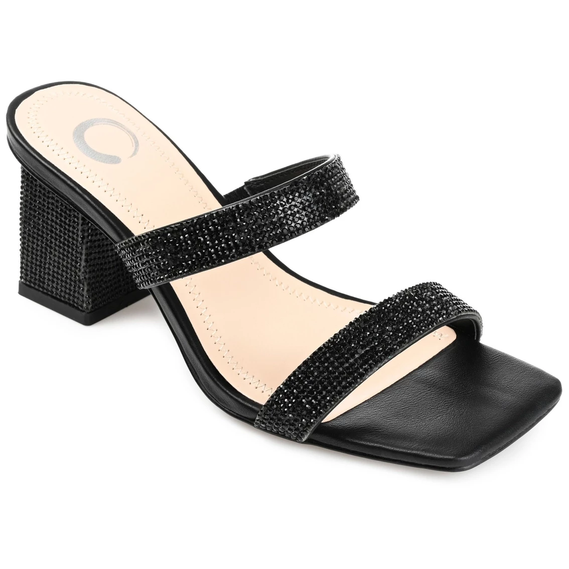 Party heels without the fuss, the Shandee by Journee Collection. These slip-on heels boast long-lasting comfort with a 4 mm Tru Comfort Foamβ’ footbed and soft man-made materials. An inset block heel elevates the design, and rhinestone details add a bit of sparkle.