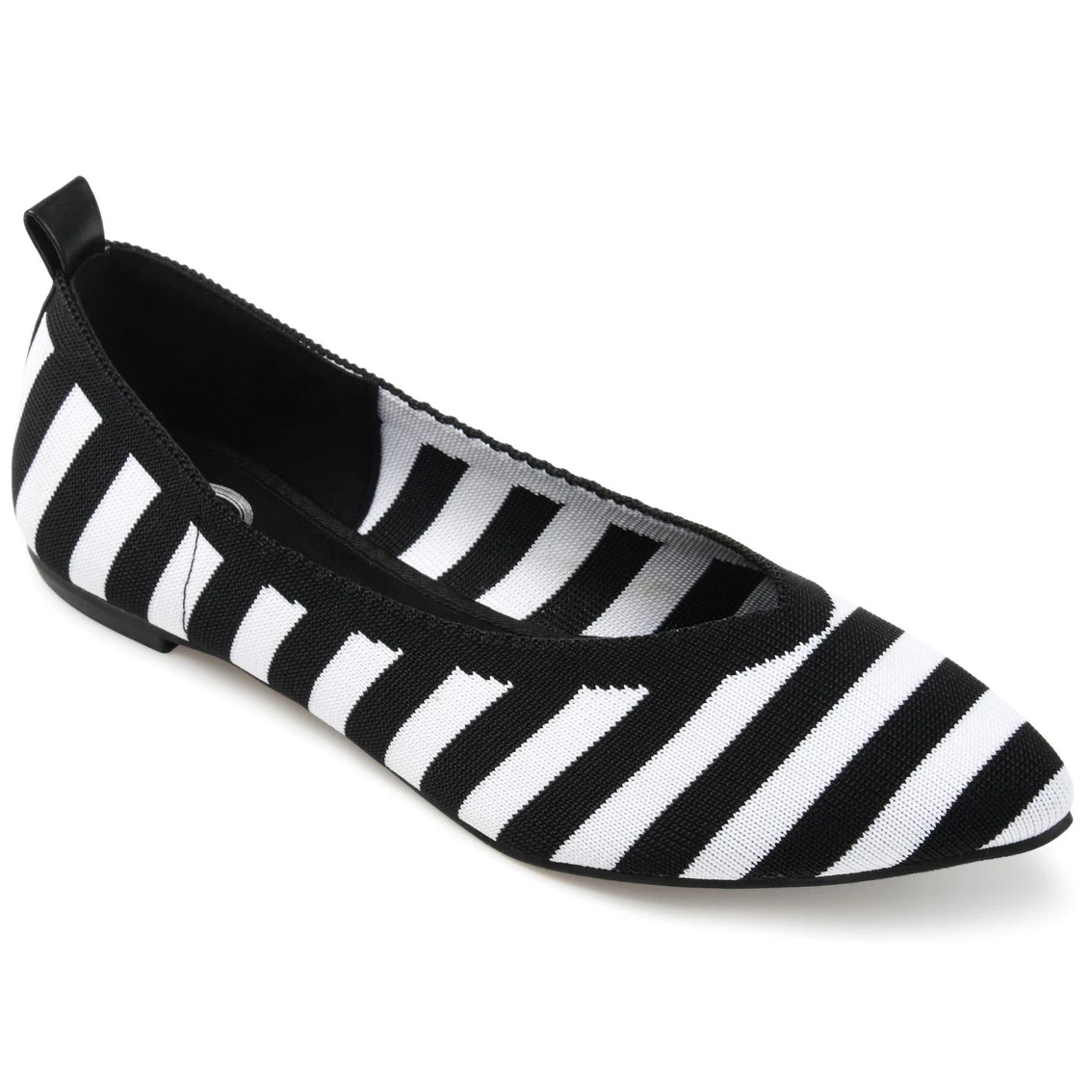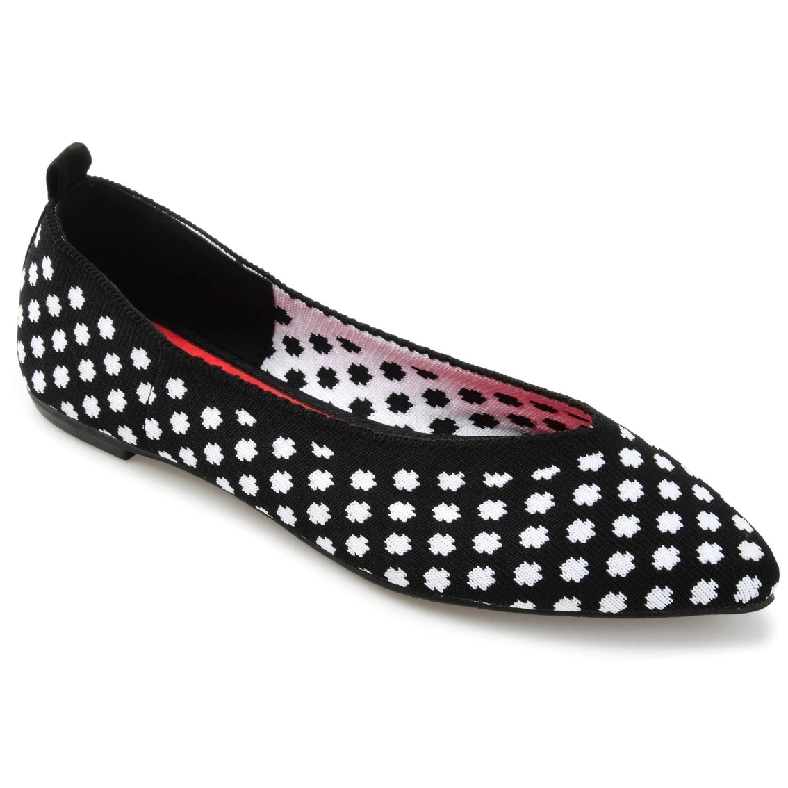 A retro print adds a lively touch to this stretchy knit fabric flat. The Tayleen by Journee Collection is a pointed-toe silhouette detailed with a sweetheart shaped topline for a feminine look. A 4 mm Tru Comfort Foamβ’ footbed finishes this style for an infinitely wearable design. Also available in wide width.