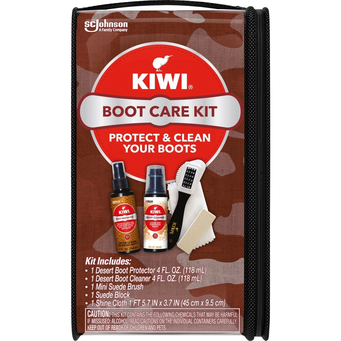 The Kiwi Desert Boot Care Kit provides complete care for your desert boots. The polish deep cleans and conditions suede and nylon uppers; treats stains and shiny spots; and protects against dust and dirt. Kit includes cleaner, protector, brush, block and cloth. Model: 28015.
