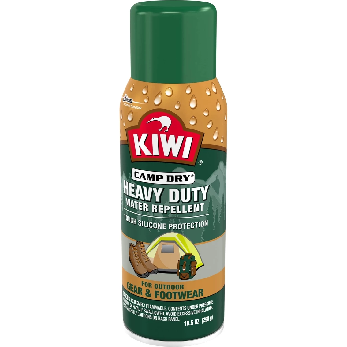Kiwi Camp Dry Heavy Duty Water Repellent offers tough silicone protection for outdoor boots and gear. Its unique formula bonds to leather and fabrics to create an extremely tough water barrier, while still allowing materials to breath. Camp Dry Heavy Duty Water Repellant is ideal for tents, tarps, boots, hunting apparel, outdoor gear, boat covers, and more.