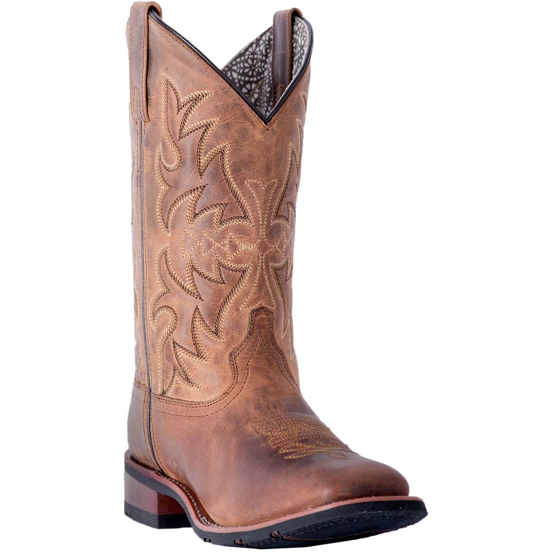 The Laredo Anita is a classic pair of boots with plenty of style. Durable leather construction thatβs distressed to look as comfortable as your favorite pair of jeans. Pretty stitching along the shaft. Comes with a removable orthotic, broad square toe and a Cowboy Approved II outsole